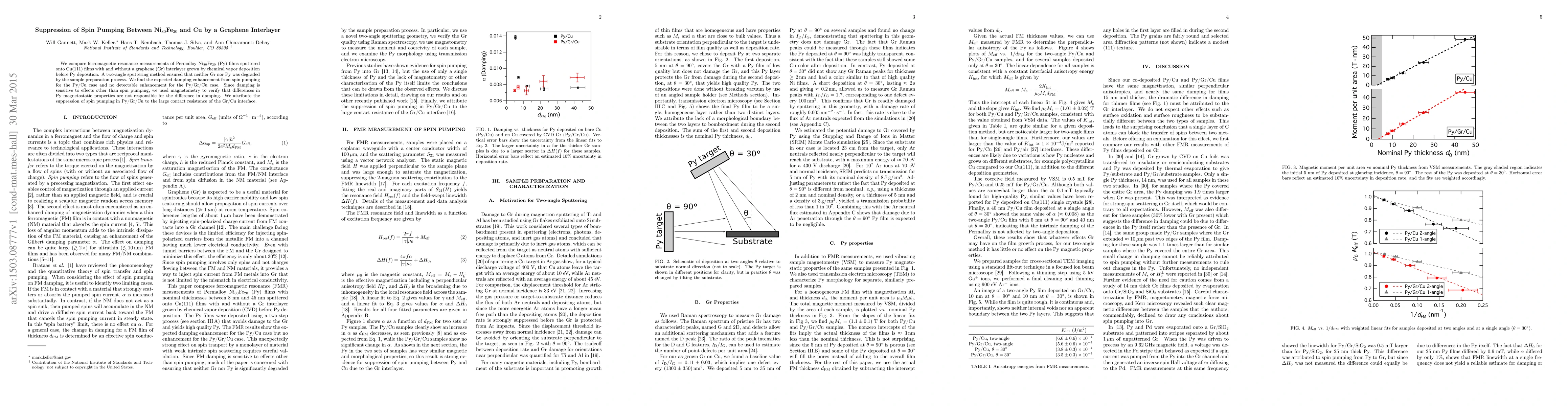 Summary: This study shows that introducing a graphene interlayer between Permalloy (Ni$_{80}$Fe$_{20}$) and Cu suppresses spin pumping, as demonstrated by damping enhancement measurements. Magnetometry confirms that this effect is due to the high contact resistance at the graphene/Cu interface rather than changes in Py's magnetostatic properties.