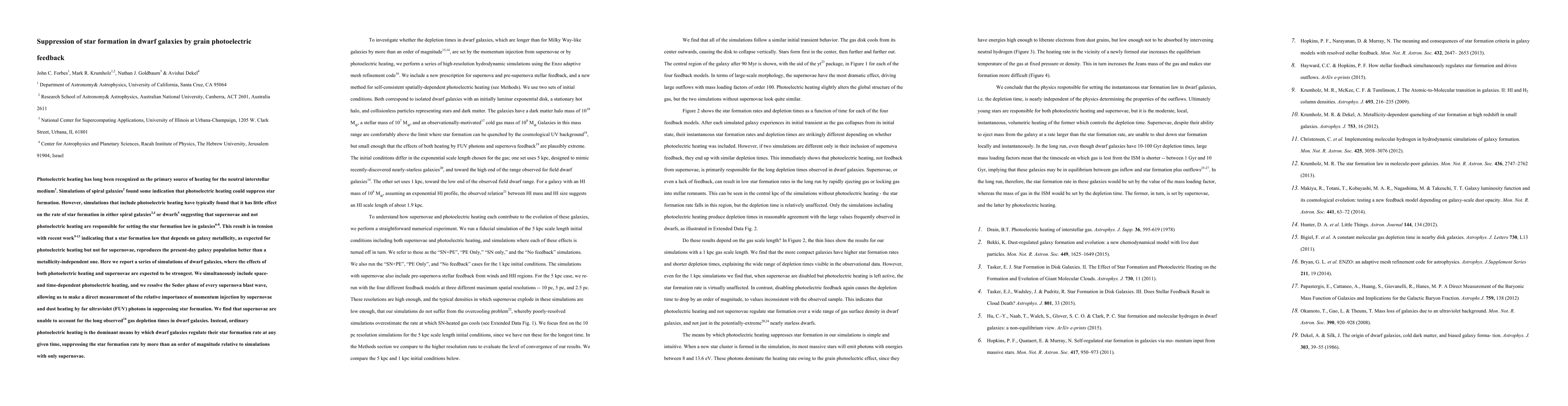 This paper finds that photoelectric heating, driven by far ultraviolet photons, is the primary mechanism for suppressing star formation in dwarf galaxies, rather than supernovae. The simulations reveal that photoelectric heating effectively regulates star formation, explaining observed gas depletion times better than supernovae alone.