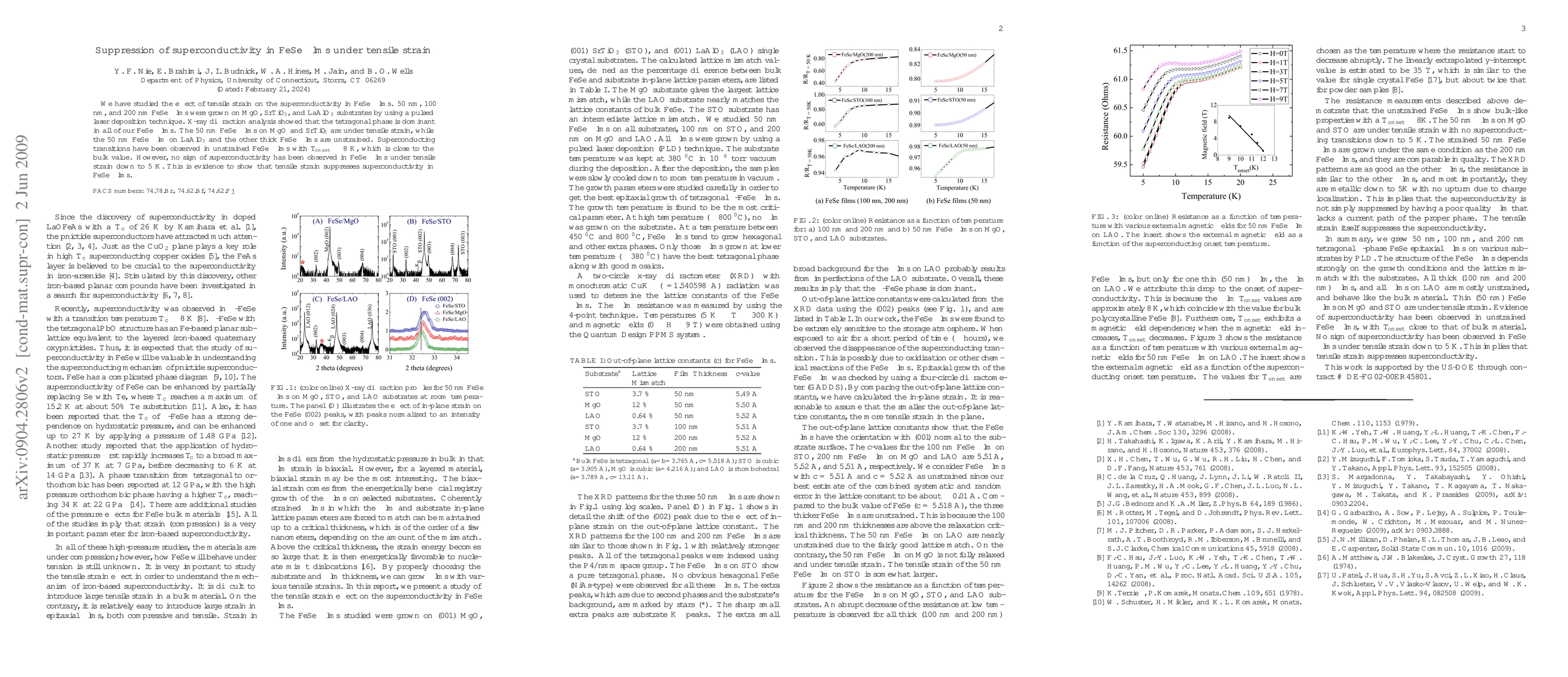 This study investigates the impact of tensile strain on superconductivity in FeSe films, finding that tensile strain suppresses superconductivity in 50 nm FeSe films on MgO and SrTiO$_3$, while unstrained films maintain superconductivity near 8 K.