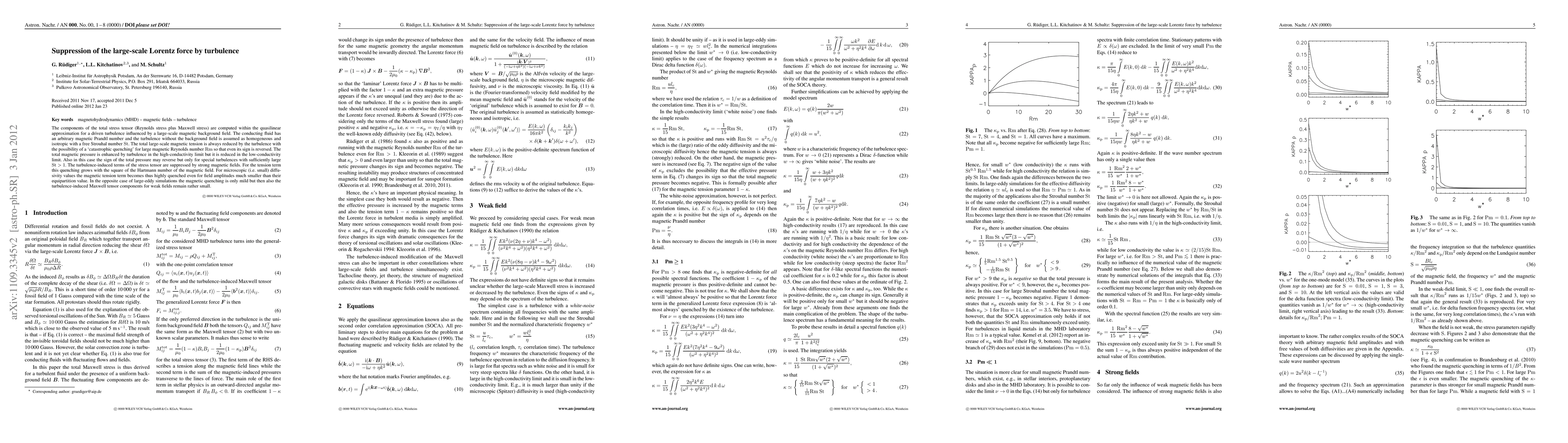 The components of the total stress tensor (Reynolds stress plus Maxwell stress) are computed within the quasilinear approximation for a driven turbulence influenced by a large-scale magnetic background field. The conducting fluid has an arbitrary magnetic Prandtl number and the turbulence without the background field is assumed as homogeneous and isotropic with a free Strouhal number St. The total large-scale magnetic tension is always reduced by the turbulence with the possibility of a `catastrophic quenching' for large magnetic Reynolds number Rm so that even its sign is reversed. The total magnetic pressure is enhanced by turbulence with short correlation time (`white noise') but it is reduced by turbulence with long correlation time. Also in this case the sign of the total pressure may reverse but only for special turbulences with sufficiently large St> 1. The turbulence-induced terms of the stress tensor are suppressed by strong magnetic fields. For the tension term this quenching grows with the square of the Hartmann number of the magnetic field. For microscopic (i.e. small) diffusivity values the magnetic tension term becomes thus highly quenched even for field amplitudes much smaller than their equipartition value. In the opposite case of large-eddy simulations the magnetic quenching is only mild but then also the turbulence-induced Maxwell tensor components for weak fields remain rather small.