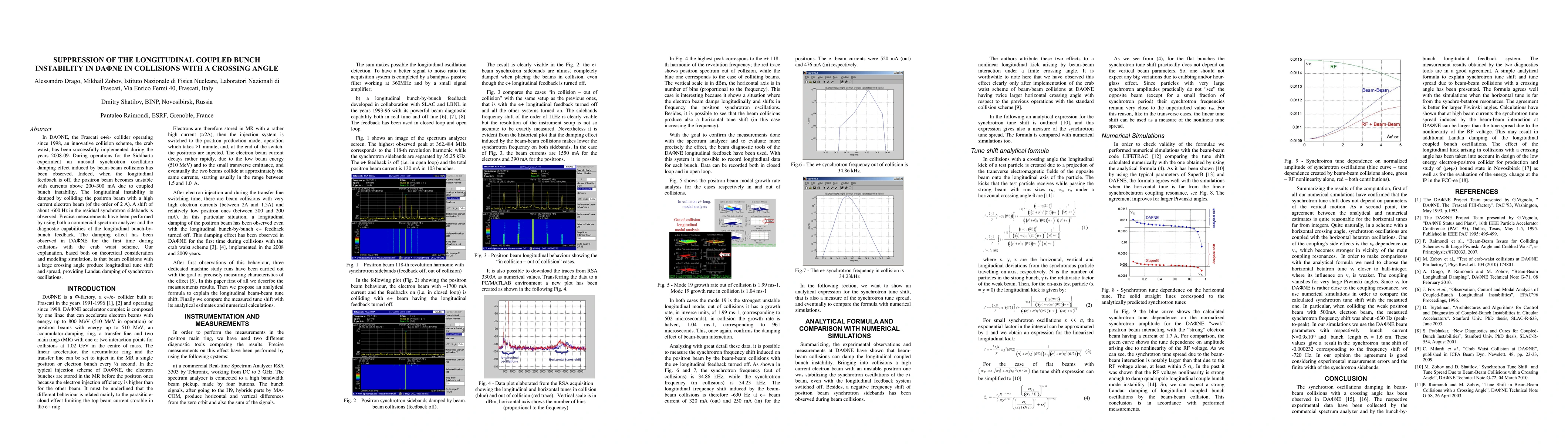 Researchers discovered that collisions with a large crossing angle in the DAFNE collider suppress the longitudinal coupled bunch instability, providing Landau damping of synchrotron oscillations.