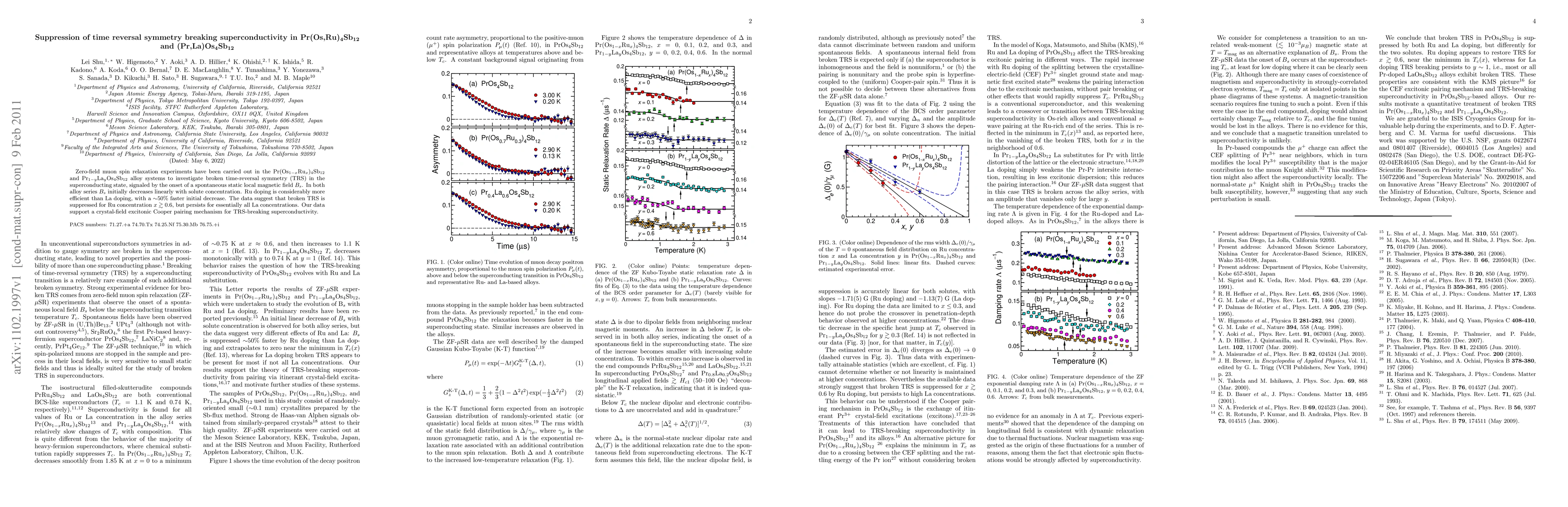 Zero-field muon spin relaxation experiments have been carried out in the Pr(Os_{1-x}Ru_x)_4Sb_12 and Pr_{1-y}La_yOs_4Sb_12 alloy systems to investigate broken time-reversal symmetry (TRS) in the superconducting state, signaled by the onset of a spontaneous static local magnetic field B_s. In both alloy series B_s initially decreases linearly with solute concentration. Ru doping is considerably more efficient than La doping, with a ~50% faster initial decrease. The data suggest that broken TRS is suppressed for Ru concentration x >~ 0.6, but persists for essentially all La concentrations. Our data support a crystal-field excitonic Cooper pairing mechanism for TRS-breaking superconductivity.