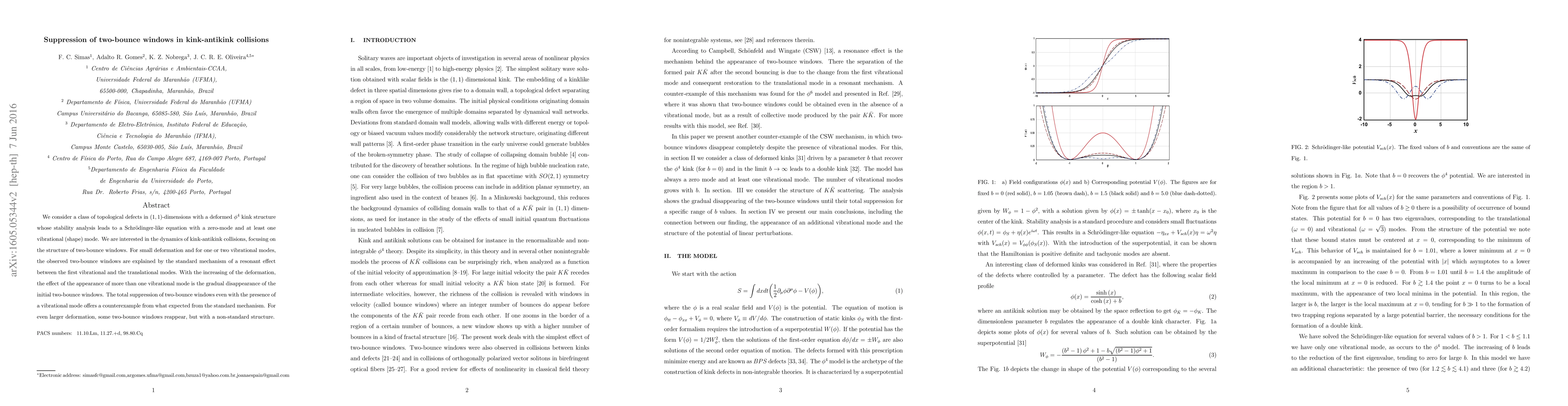 We consider a class of topological defects in $(1,1)$-dimensions with a deformed $\phi^4$ kink structure whose stability analysis leads to a Schr\"odinger-like equation with a zero-mode and at least one vibrational (shape) mode. We are interested in the dynamics of kink-antikink collisions, focusing on the structure of two-bounce windows. For small deformation and for one or two vibrational modes, the observed two-bounce windows are explained by the standard mechanism of a resonant effect between the first vibrational and the translational modes. With the increasing of the deformation, the effect of the appearance of more than one vibrational mode is the gradual disappearance of the initial two-bounce windows. The total suppression of two-bounce windows even with the presence of a vibrational mode offers a counterexample from what expected from the standard mechanism. For even larger deformation, some two-bounce windows reappear, but with a non-standard structure.