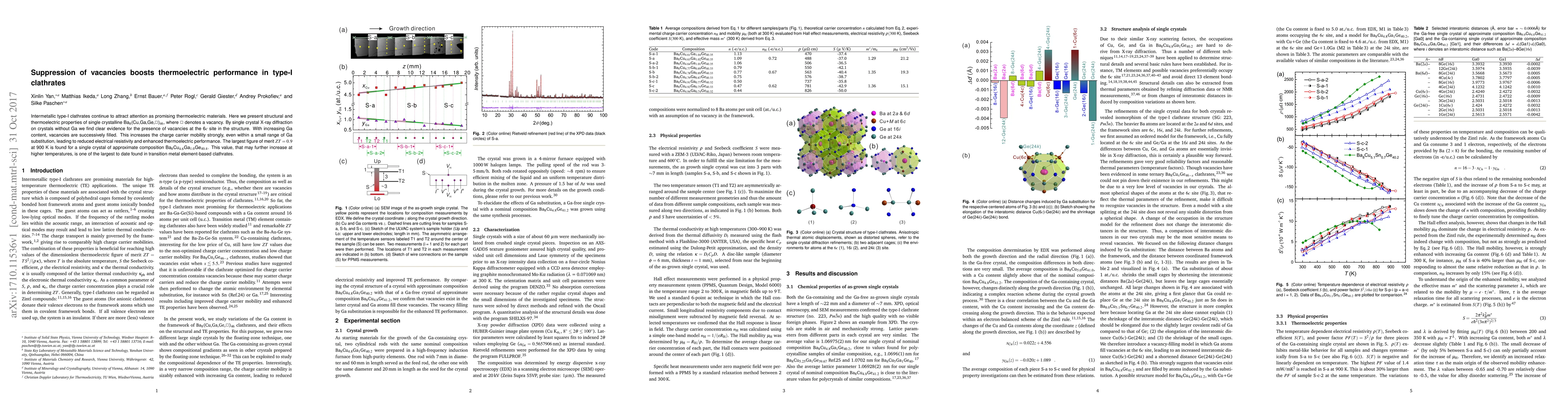 Intermetallic type-I clathrates continue to attract attention as promising thermoelectric materials. Here we present structural and thermoelectric properties of single crystalline Ba8(Cu,Ga,Ge,v)46, where v denotes a vacancy. By single crystal X-ray diffraction on crystals without Ga we find clear evidence for the presence of vacancies at the 6c site in the structure. With increasing Ga content, vacancies are successively filled. This increases the charge carrier mobility strongly, even within a small range of Ga substitution, leading to reduced electrical resistivity and enhanced thermoelectric performance. The largest figure of merit ZT =0.9 at 900 K is found for a single crystal of approximate composition Ba8Cu4.6Ga1.0Ge40.4. This value, that may further increase at higher temperatures, is one of the largest to date found in transition metal element-based clathrates.