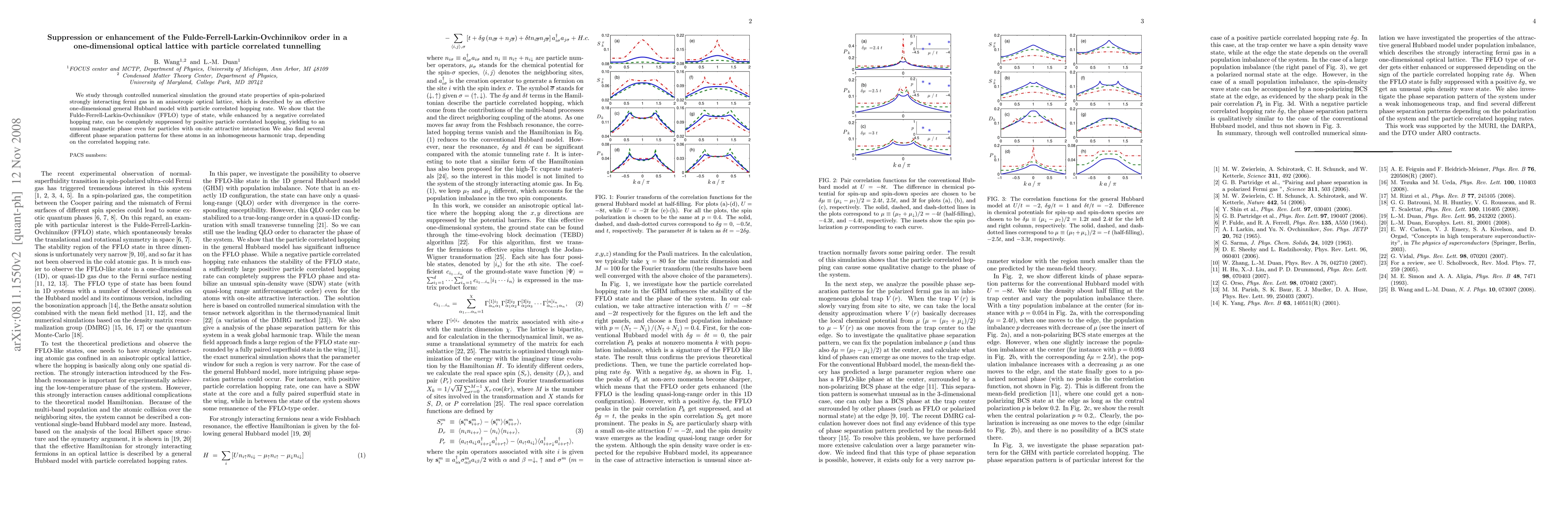 We study through controlled numerical simulation the ground state properties of spin-polarized strongly interacting fermi gas in an anisotropic optical lattice, which is described by an effective one-dimensional general Hubbard model with particle correlated hopping rate. We show that the Fulde-Ferrell-Larkin-Ovchinnikov (FFLO) type of state, while enhanced by a negative correlated hopping rate, can be completely suppressed by positive particle correlated hopping, yielding to an unusual magnetic phase even for particles with on-site attractive interaction We also find several different phase separation patterns for these atoms in an inhomogeneous harmonic trap, depending on the correlated hopping rate.