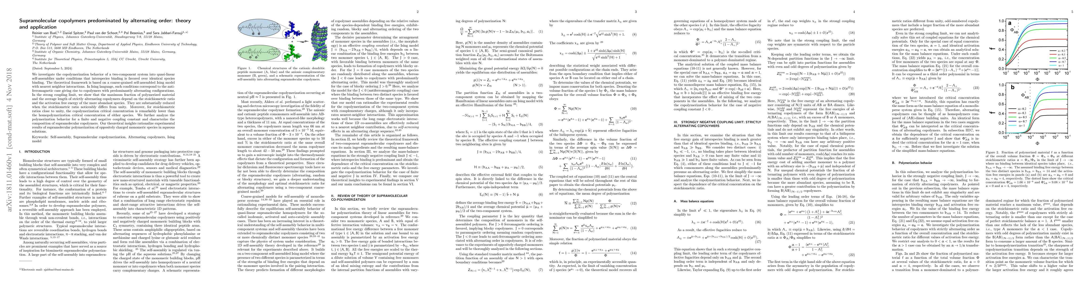Researchers explore copolymerization of oppositely charged monomers in aqueous solutions, finding that alternating order is favored and the critical concentration for copolymerization is lower than individual homopolymers.