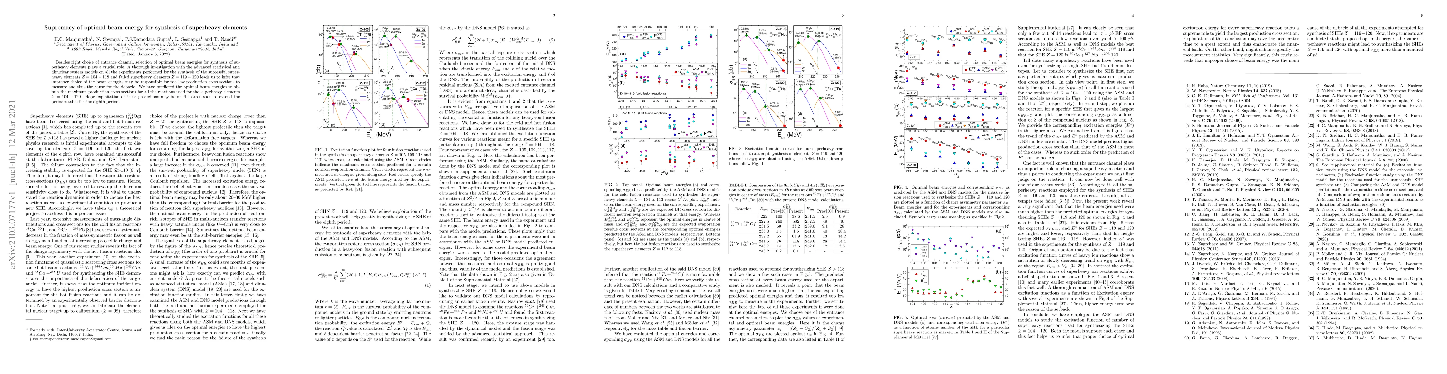 This research investigates the importance of optimal beam energies in synthesizing superheavy elements, concluding that incorrect beam energy selection leads to low production cross sections. The study predicts optimal beam energies for reactions involving elements Z=104-120 to enhance future synthesis efforts.
