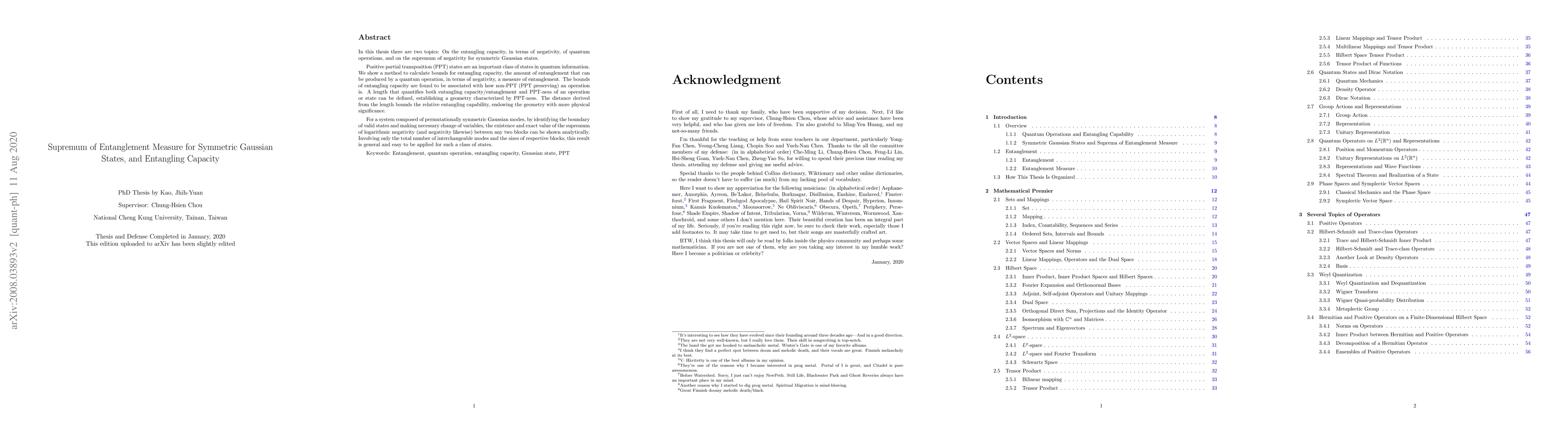 In this thesis there are two topics: On the entangling capacity, in terms of negativity, of quantum operations, and on the supremum of negativity for symmetric Gaussian states. Positive partial transposition (PPT) states are an important class of states in quantum information. We show a method to calculate bounds for entangling capacity, the amount of entanglement that can be produced by a quantum operation, in terms of negativity, a measure of entanglement. The bounds of entangling capacity are found to be associated with how non-PPT (PPT preserving) an operation is. A length that quantifies both entangling capacity/entanglement and PPT-ness of an operation or state can be defined, establishing a geometry characterized by PPT-ness. The distance derived from the length bounds the relative entangling capability, endowing the geometry with more physical significance. For a system composed of permutationally symmetric Gaussian modes, by identifying the boundary of valid states and making necessary change of variables, the existence and exact value of the supremum of logarithmic negativity (and negativity likewise) between any two blocks can be shown analytically. Involving only the total number of interchangeable modes and the sizes of respective blocks, this result is general and easy to be applied for such a class of states.