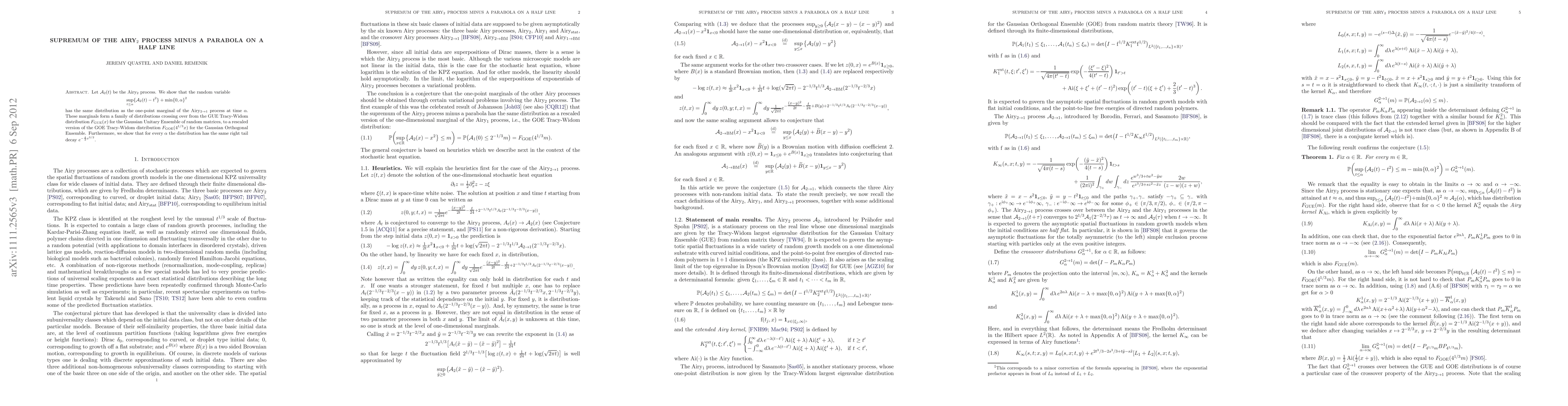 Let $\aip(t)$ be the Airy$_2$ process. We show that the random variable [\sup_{t\leq\alpha}\{aip(t)-t^2}+\min{0,\alpha}^2] has the same distribution as the one-point marginal of the Airy$_{2\to1}$ process at time $\alpha$. These marginals form a family of distributions crossing over from the GUE Tracy-Widom distribution $F_{\rm GUE}(x)$ for the Gaussian Unitary Ensemble of random matrices, to a rescaled version of the GOE Tracy-Widom distribution $F_{\rm GOE}(4^{1/3}x)$ for the Gaussian Orthogonal Ensemble. Furthermore, we show that for every $\alpha$ the distribution has the same right tail decay $e^{-(4/3)x^{3/2}}$.