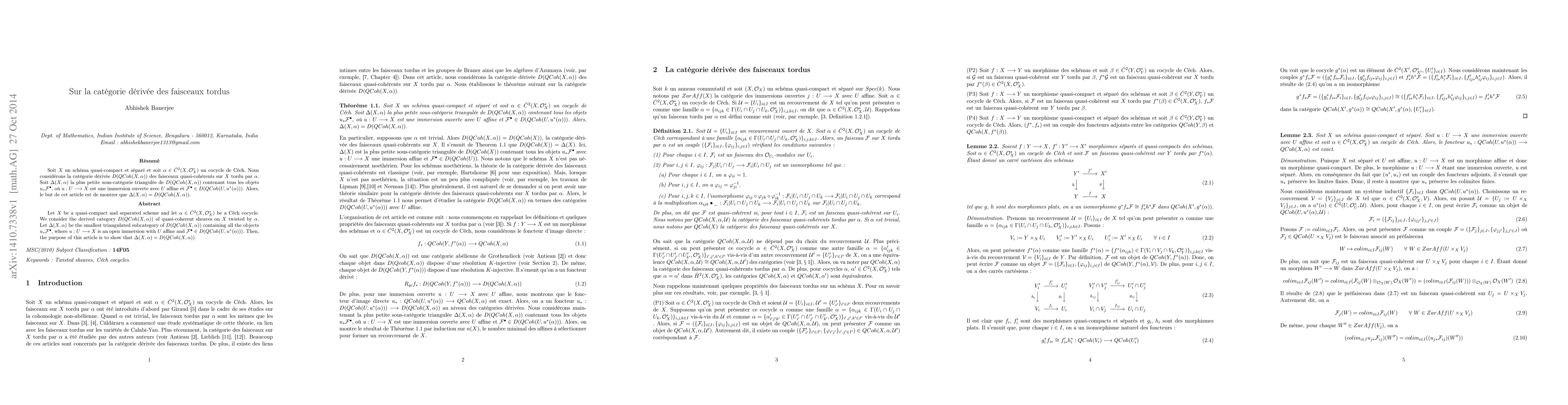 Soit $X$ un sch\'ema quasi-compact et s\'epar\'e et soit $\alpha\in \check{C}^2(X, \mathcal O_X^*)$ un cocycle de C\v{e}ch. Nous consid\'erons la cat\'egorie d\'eriv\'ee $D(QCoh(X,\alpha))$ des faisceaux quasi-coh\'erents sur $X$ tordu par $\alpha$. Soit $\Delta(X,\alpha)$ la plus petite sous-cat\'egorie triangul\'ee de $D(QCoh(X,\alpha))$ contenant tous les objets $u_*\mathcal F^\bullet$, o\`u $u:U\longrightarrow X$ est une immersion ouverte avec $U$ affine et $\mathcal F^\bullet\in D(QCoh(U,u^*(\alpha)))$. Alors, le but de cet article est de montrer que $\Delta(X,\alpha)=D(QCoh(X,\alpha))$. -- Let $X$ be a quasi-compact and separated scheme and let $\alpha\in \check{C}^2(X, \mathcal O_X^*)$ be a C\v{e}ch cocycle. We consider the derived category $D(QCoh(X,\alpha))$ of quasi-coherent sheaves on $X$ twisted by $\alpha$. Let $\Delta(X,\alpha)$ be the smallest triangulated subcategory of $D(QCoh(X,\alpha))$ containing all the objects $u_*\mathcal F^\bullet$, where $u:U\longrightarrow X$ is an open immersion with $U$ affine and $\mathcal F^\bullet\in D(QCoh(U,u^*(\alpha)))$. Then, the purpose of this article is to show that $\Delta(X,\alpha)=D(QCoh(X,\alpha))$.