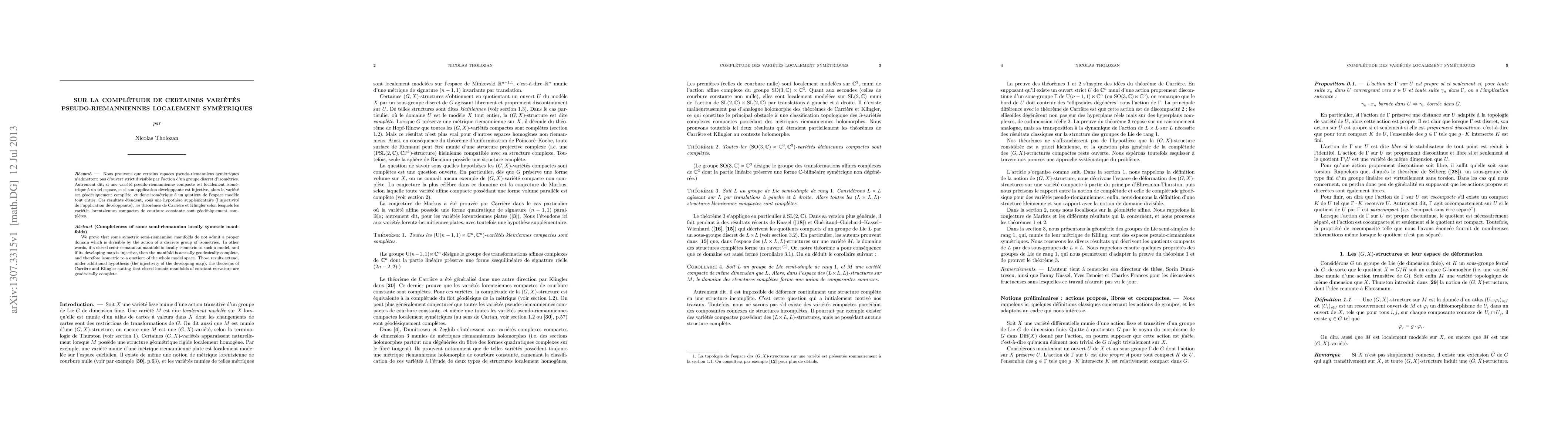 We prove that some symetric semi-riemannian manifolds do not admit a proper domain which is divisible by the action of a discrete group of isometries. In other words, if a closed semi-riemannian manifold is locally isometric to such a model, and if its developing map is injective, then the manifold is actually geodesically complete, and therefore isometric to a quotient of the whole model space. Those results extend, under additional hypothesis (the injectivity of the developing map), the theorems of Carriere and Klingler stating that closed lorentz manifolds of constant curvature are geodesically complete.