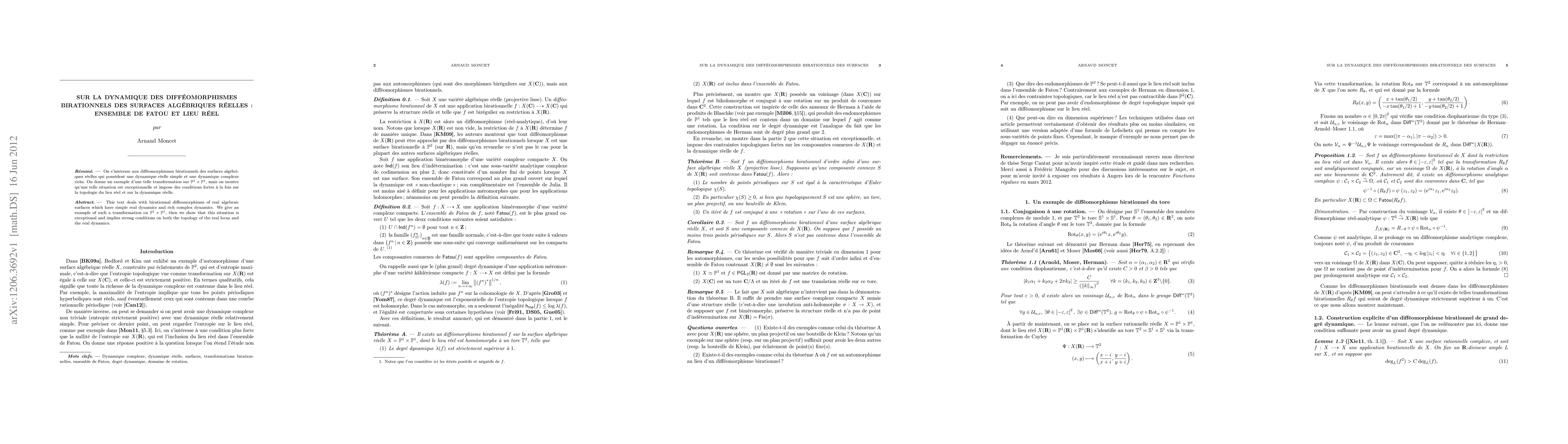 This text deals with birationnal diffeomorphisms of real algebraic surfaces which have simple real dynamics and rich complex dynamics. We give an example of such a transformation on P^1xP^1, then we show that this situation is exceptional and implies strong conditions on both the topology of the real locus and the real dynamics.