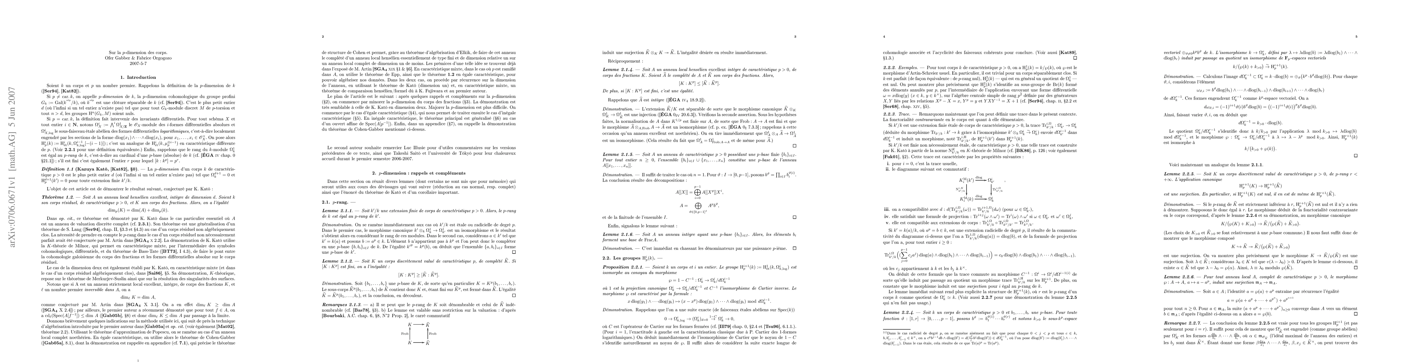 Let A be an excellent integral henselian local noetherian ring, k its residue field of characteristic p>0 and K its fraction field. Using an algebraization technique introduced by the first named author, and the one-dimension case already proved by Kazuya KATO, we prove the following formula: cd_p(K) = dim(A) + p-rank(k), if k is separably closed and K of characteristic zero. A similar statement is valid without those assumptions on k and K.