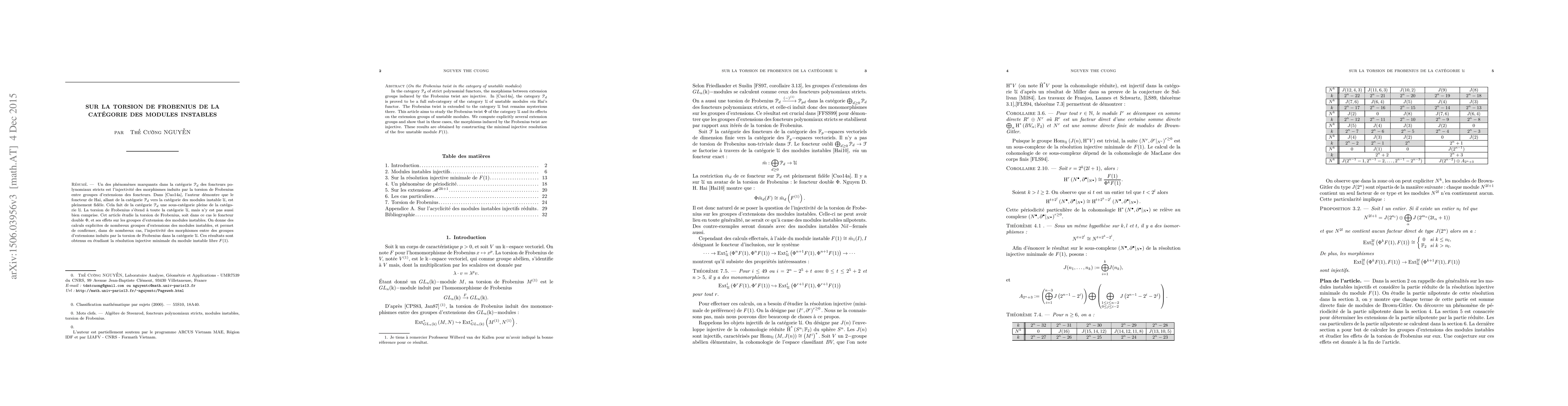 This paper investigates the effect of the Frobenius twist on the extension groups within the category of unstable modules. It demonstrates that the morphisms induced by the Frobenius twist remain injective, as shown through explicit computation of several extension groups using the minimal injective resolution of the free unstable module $F(1)$.