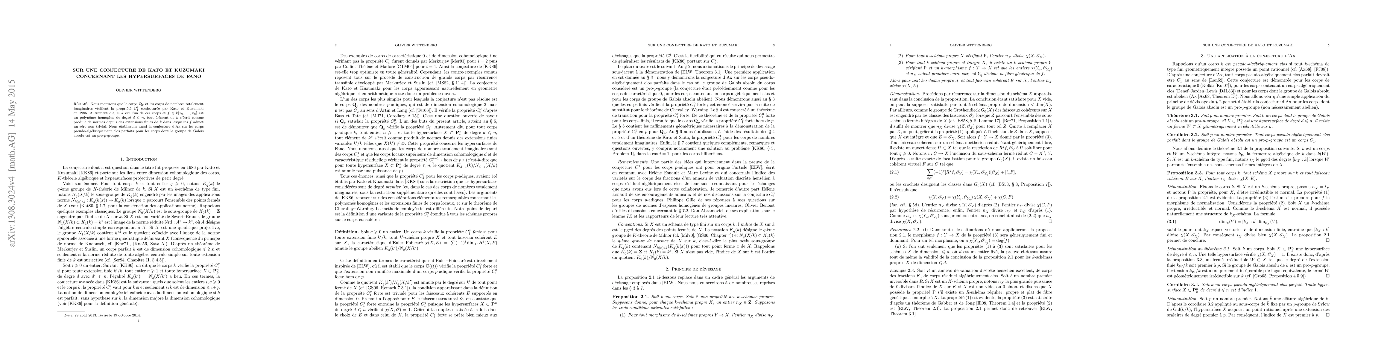 Nous montrons que les corps p-adiques et les corps de nombres totalement imaginaires v\'erifient la propri\'et\'e C_1^1 conjectur\'ee par Kato et Kuzumaki en 1986. Autrement dit, si k est l'un de ces corps et f(x_0, ..., x_n) est un polyn\^ome homog\`ene de degr\'e au plus n \`a coefficients dans k, tout \'el\'ement de k s'\'ecrit comme produit de normes depuis des extensions finies de k dans lesquelles f admet un z\'ero non trivial. Nous \'etablissons aussi la conjecture d'Ax sur les corps pseudo-alg\'ebriquement clos parfaits pour les corps dont le groupe de Galois absolu est un pro-p-groupe. ----- We prove that p-adic fields as well as totally imaginary number fields satisfy the C_1^1 property conjectured by Kato and Kuzumaki in 1986. In other words, if k denotes such a field and f(x_0, ..., x_n) is a homogeneous polynomial of degree at most n with coefficients in k, every element of k may be written as a product of norms from finite extensions of k in which f possesses a nontrivial zero. As a by-product of the proof, we also establish Ax's conjecture about perfect pseudo-algebraically closed fields for fields whose absolute Galois group is a pro-p-group.