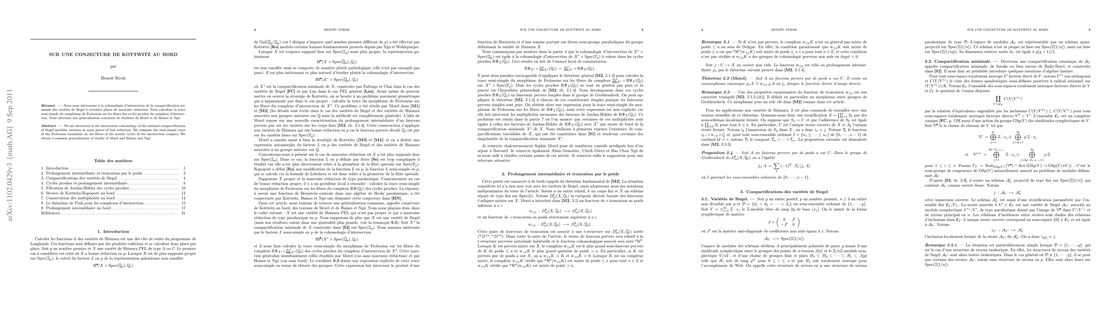 We are interested in the intersection cohomology of the minimal compactification of Siegel modular varieties at some places of bad reduction. We compute the semi-simple trace of the Frobenius morphism on the fibers of the nearby cycles of the intersection complex. We obtain a common generalization of results of Morel and Haines and Ngo.