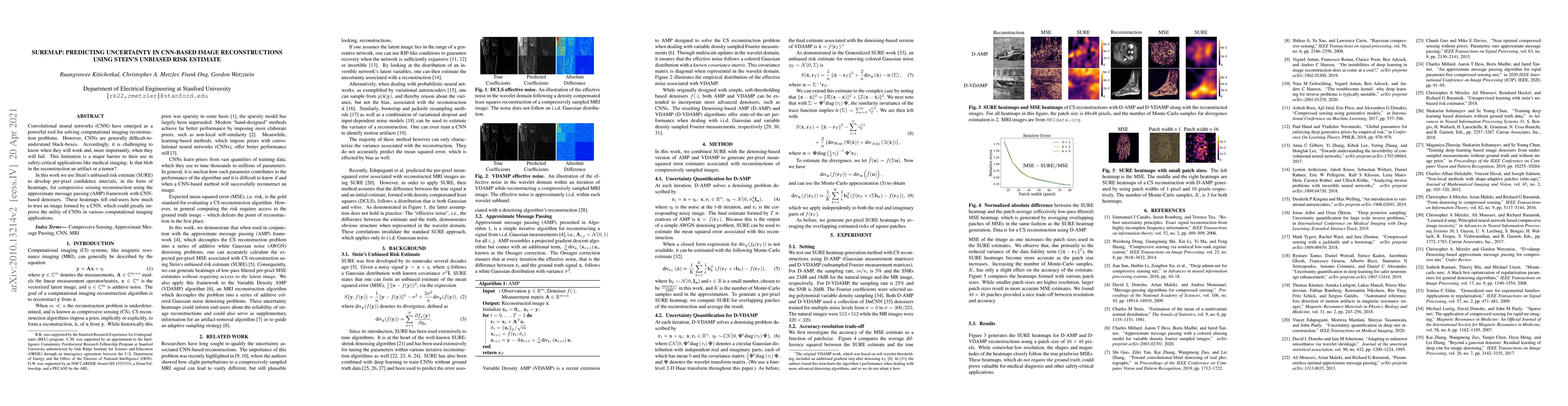 This research introduces SUREMap, a method that leverages Stein's unbiased risk estimate to generate per-pixel confidence intervals for CNN-based image reconstruction. These confidence heatmaps aim to enhance the reliability of CNN outputs, particularly in safety-critical applications like medical imaging, by indicating the trustworthiness of reconstructed images. For more details, please refer to the original paper.