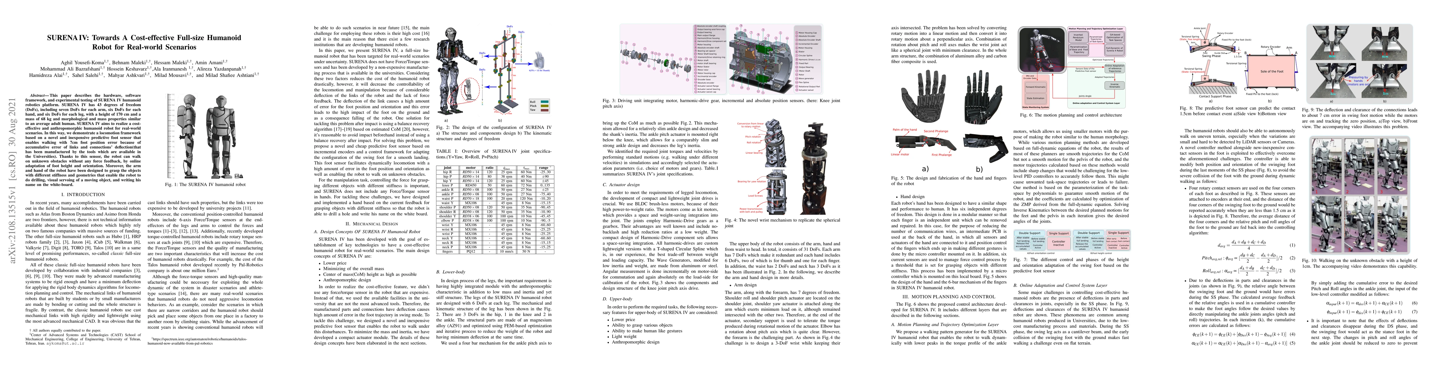 This paper presents SURENA IV, a cost-effective humanoid robot with 43 degrees of freedom designed for real-world tasks. It employs an innovative, low-cost predictive foot sensor for stable walking on unknown terrains and a versatile arm system capable of performing complex tasks like drilling and writing.