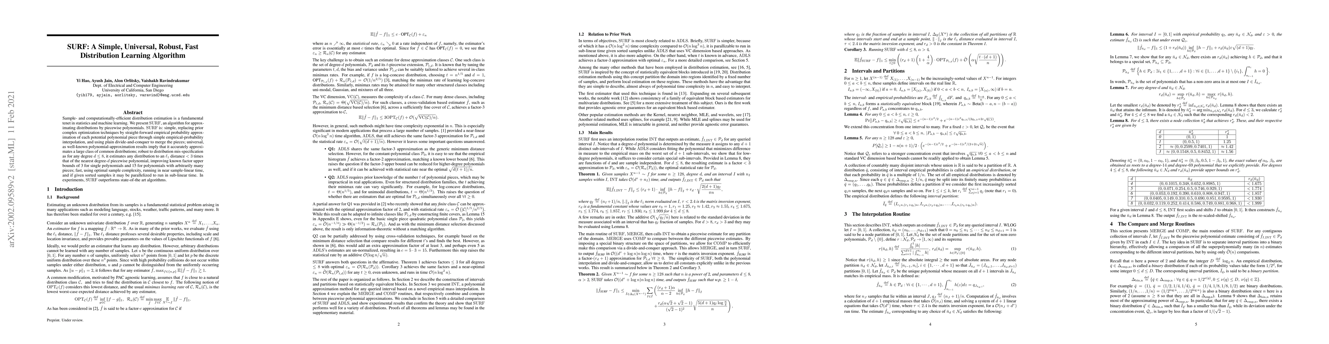 SURF is a simple algorithm that accurately approximates common distributions with high robustness and fast computation, outperforming state-of-the-art algorithms in experiments.