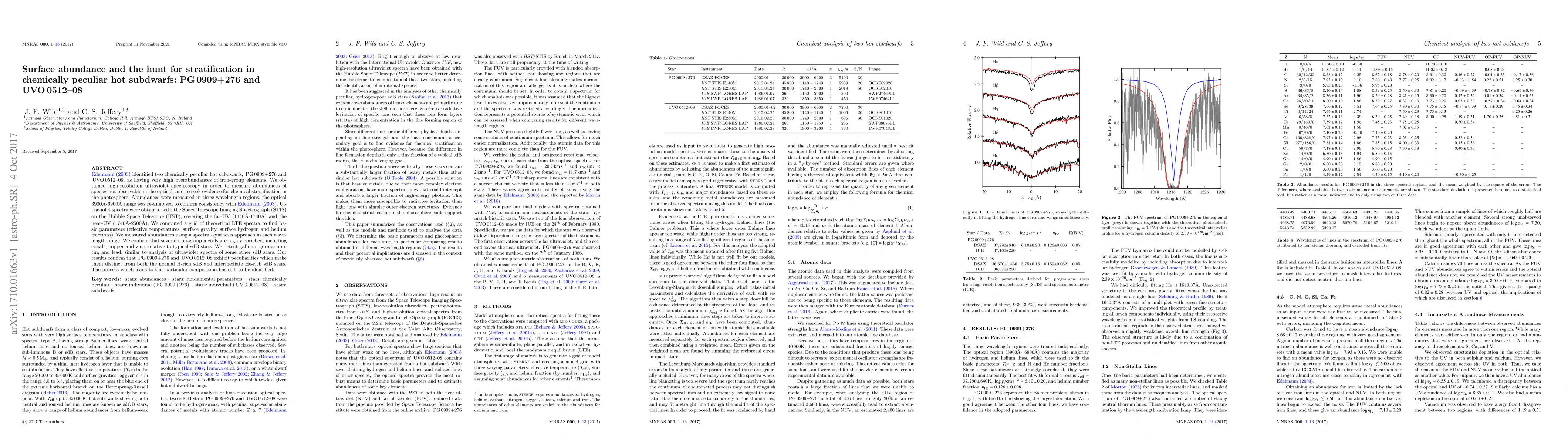Researchers analyzed two chemically peculiar hot subdwarfs using high-resolution ultraviolet spectroscopy to find evidence of chemical stratification in their photospheres. They confirmed the unusual abundance of iron-group metals and other elements in these stars, which sets them apart from typical subdwarf stars.