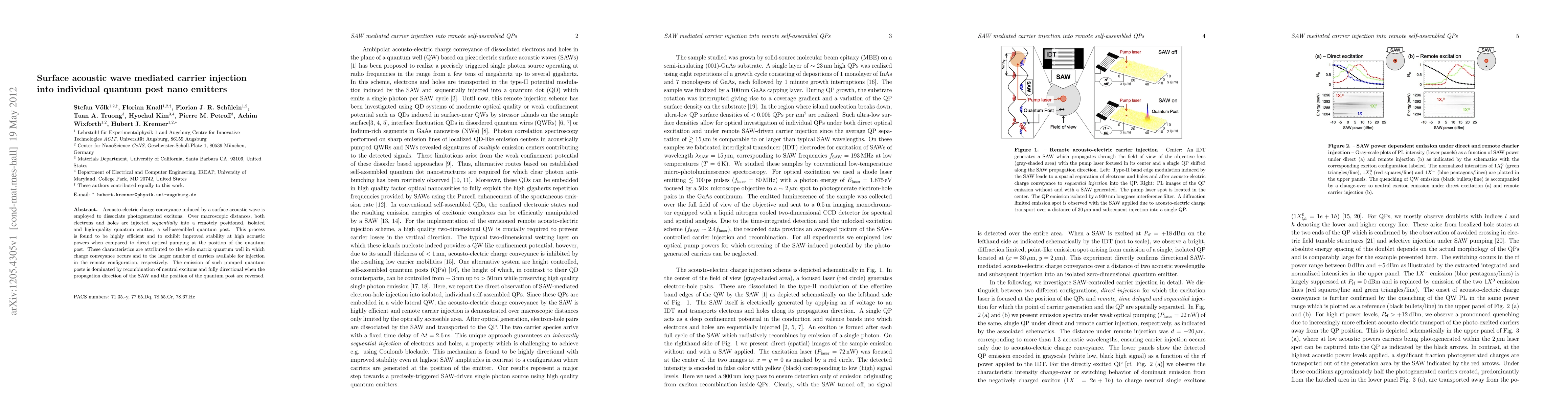 This paper investigates the efficient use of surface acoustic waves to sequentially inject electrons and holes into isolated quantum posts, achieving high stability and improved performance over direct optical pumping. The method leverages a wide matrix quantum well and benefits from the larger number of available carriers in the remote configuration.