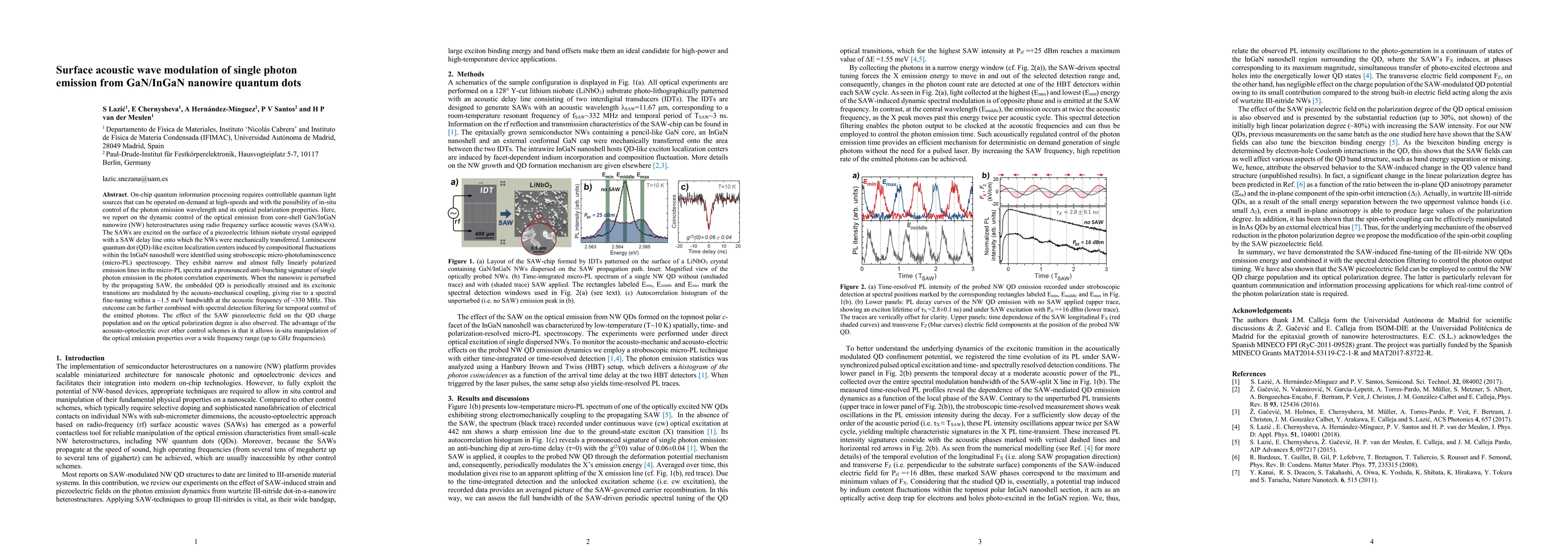 The paper presents a novel approach for dynamically controlling the optical emission properties of GaN/InGaN nanowire quantum dots using surface acoustic waves, enabling spectral fine-tuning, temporal control, and manipulation of optical polarization.
