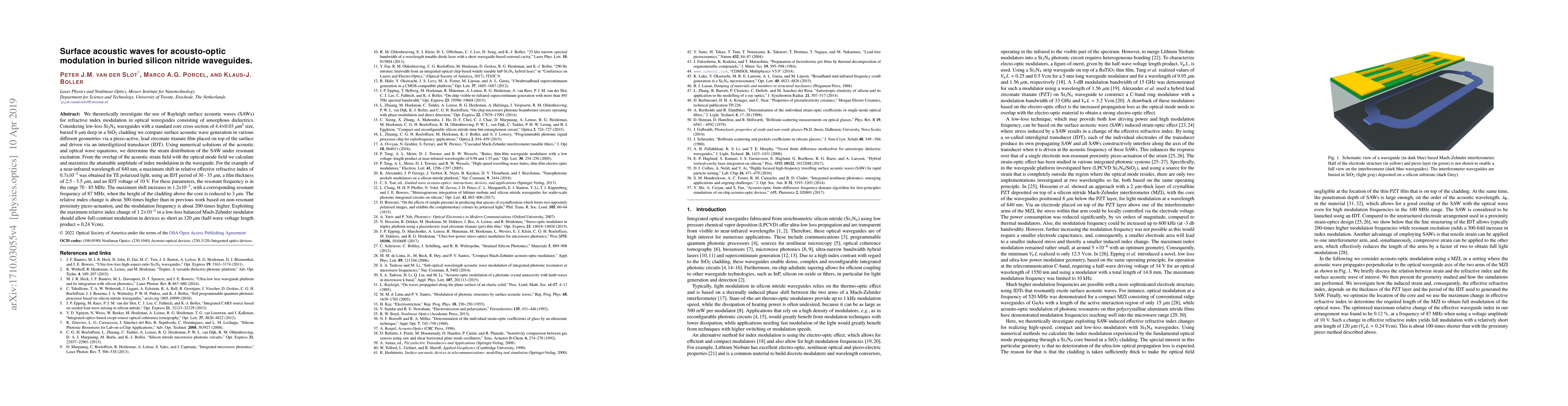 Researchers investigated using surface acoustic waves to modulate light in buried silicon nitride waveguides, achieving a 300-times higher modulation frequency than previous methods, with potential for full-contrast modulation in devices as short as 120 microns.