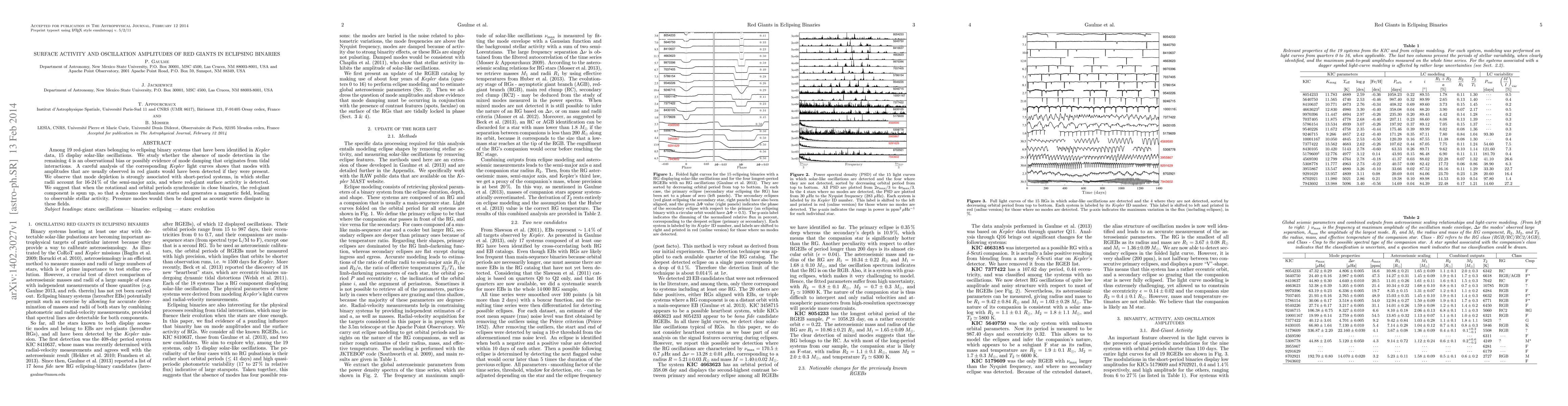 Red giant stars in eclipsing binaries with synchronized rotation and orbital periods show evidence of mode damping due to tidal interactions, leading to decreased oscillation amplitudes and increased surface activity.