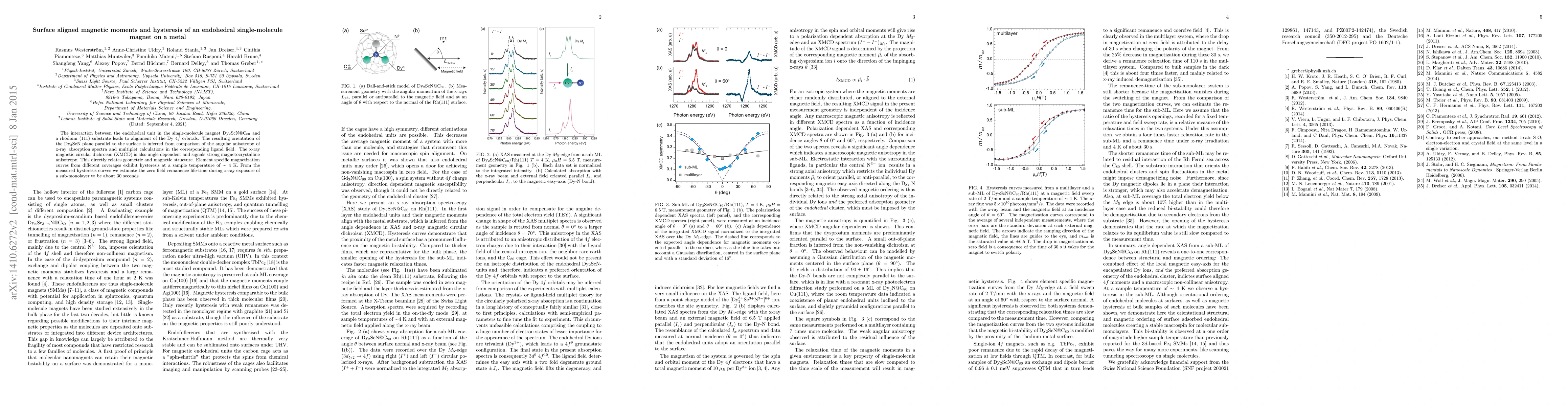 This paper investigates the interaction between the Dy$_2$ScN@C$_{80}$ single-molecule magnet and a rhodium (111) surface, revealing the alignment of Dy $4f$ orbitals and the parallel orientation of the Dy$_2$ScN plane to the surface. The study uses XMCD and magnetization curves to demonstrate strong magnetocrystalline anisotropy and hysteresis at $\sim4$ K, estimating a zero field remanence lifetime of about 30 seconds.