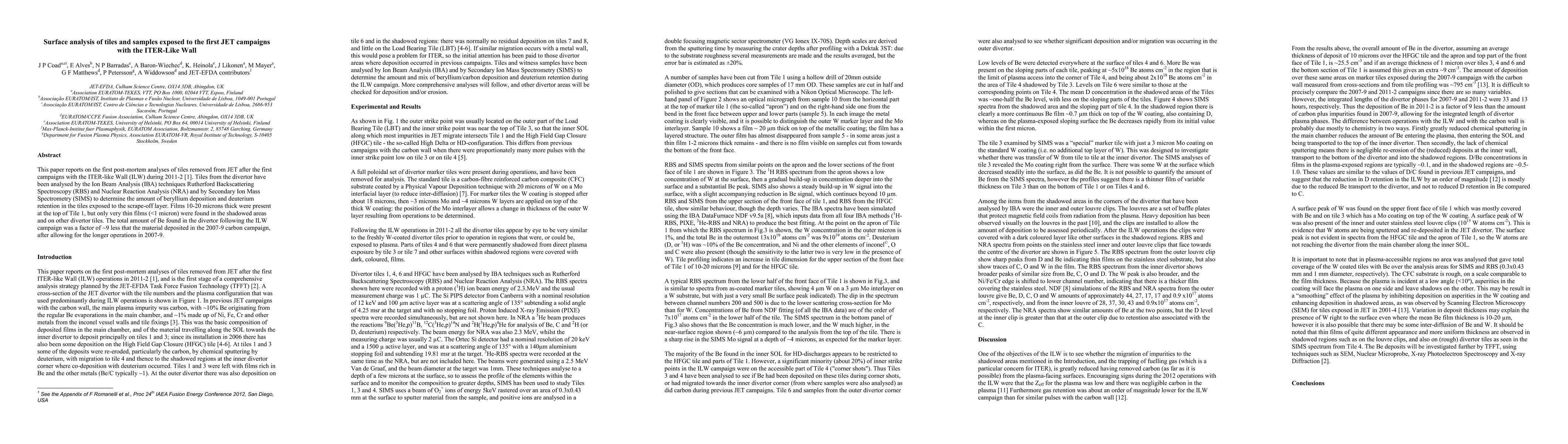 This study analyzes tiles from JET's divertor after exposure to the ITER-like Wall campaigns, using IBA techniques to measure beryllium deposition and deuterium retention. Thick beryllium films were found on Tile 1, while thinner films were detected in shadowed areas and other tiles, indicating a significant reduction in beryllium deposition compared to previous campaigns.