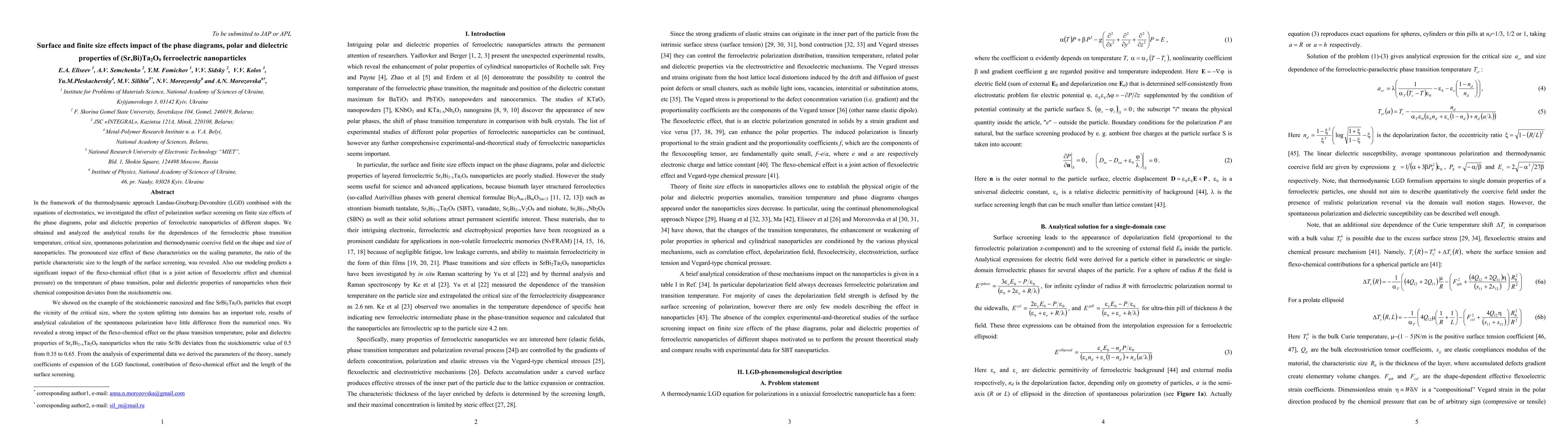 This research employs the Landau-Ginzburg-Devonshire approach combined with electrostatics to study the phase diagrams, polar, and dielectric properties of ferroelectric nanoparticles of (Sr,Bi)Ta2O9, revealing significant size effects and the influence of flexo-chemical effects on phase transition temperatures and properties.