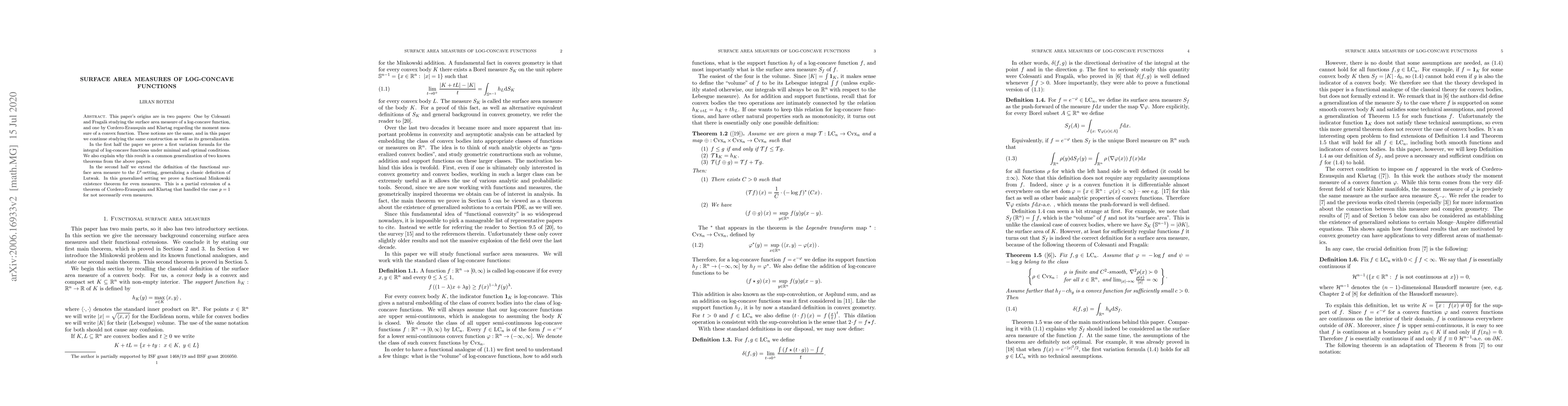 This paper generalizes the surface area measure of log-concave functions, proving a first variation formula under optimal conditions and extending the definition to L^p-settings. It also establishes a functional Minkowski existence theorem for even measures in the generalized setting.