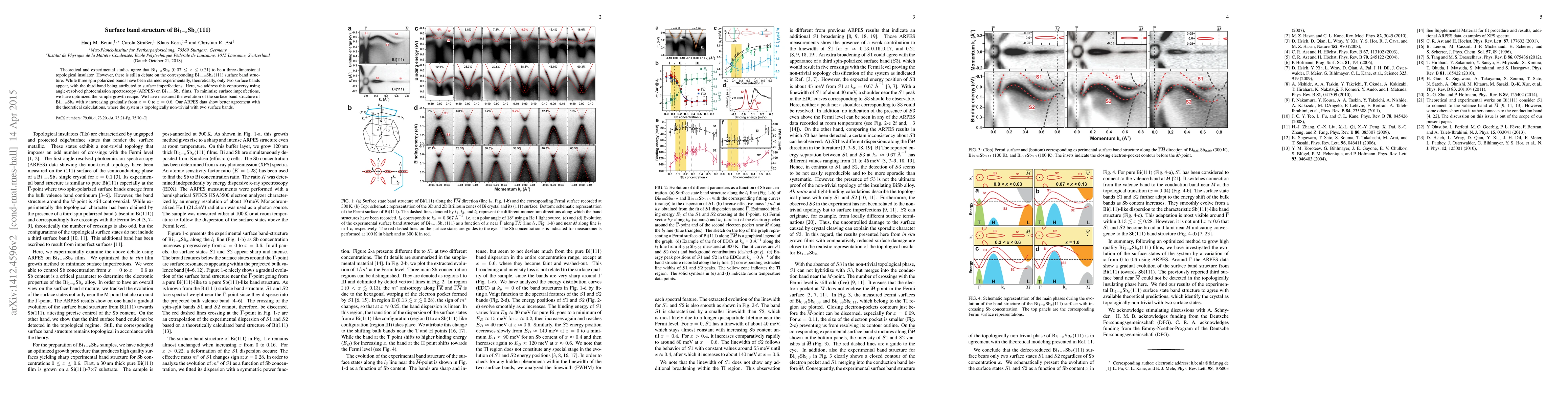 ARPES was used to investigate the evolution of surface states in Bi1−xSbx(111) films with varying Sb concentration.
