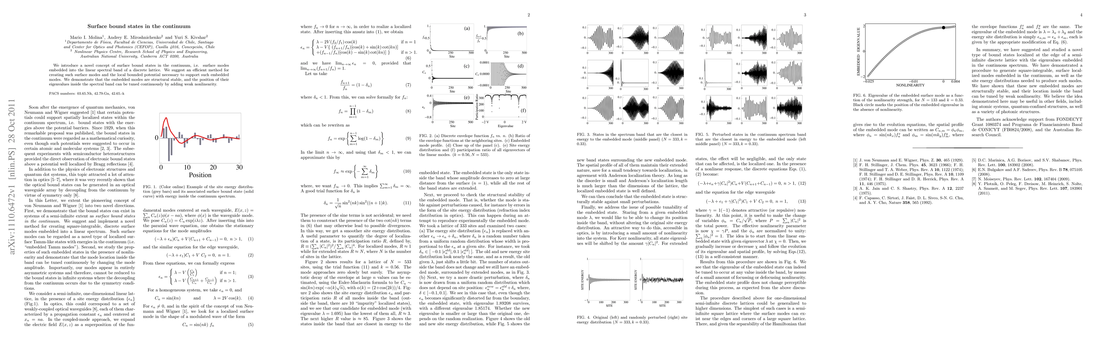 This paper introduces surface bound states in the continuum, which are surface modes embedded within the spectral band of a discrete lattice. The authors propose a method to create these modes using a local bounded potential and demonstrate their stability and tunable eigenvalue positioning through weak nonlinearity.