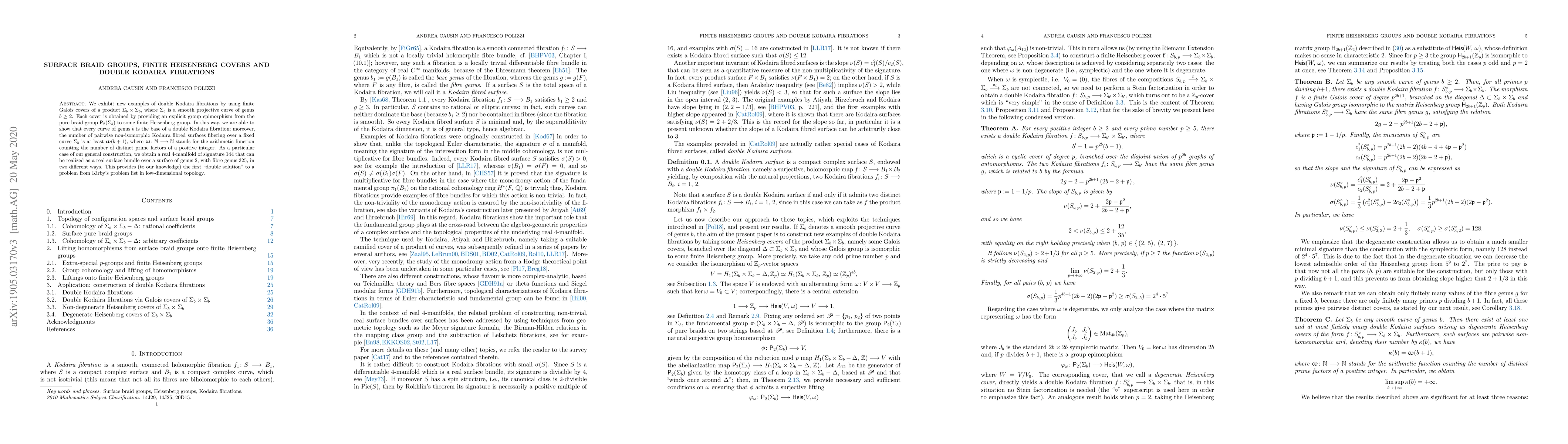 The paper constructs new examples of double Kodaira fibrations via finite Galois covers of the product of two genus $b$ curves, employing group epimorphisms from pure braid groups to finite Heisenberg groups. It concludes that every genus $b$ curve can serve as the base for such fibrations, with the number of non-isomorphic fibrations tied to the prime factors of $b+1$.