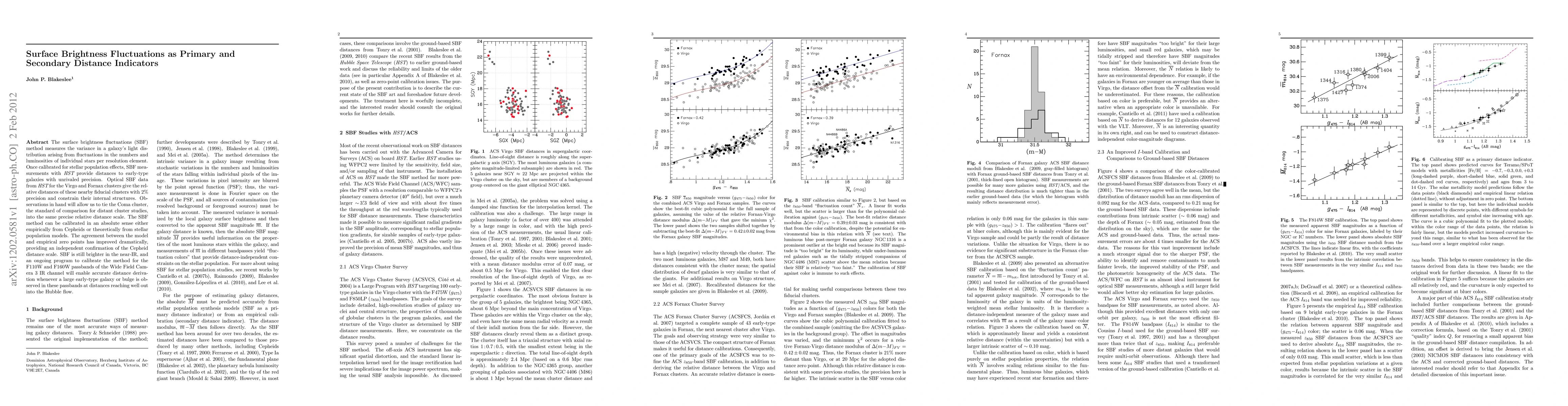 The surface brightness fluctuations (SBF) method offers precise distance measurements for early-type galaxies, calibrated via HST data, providing 2% accuracy for Virgo and Fornax clusters. Ongoing near-IR calibrations will extend this method's applicability to distant galaxies.
