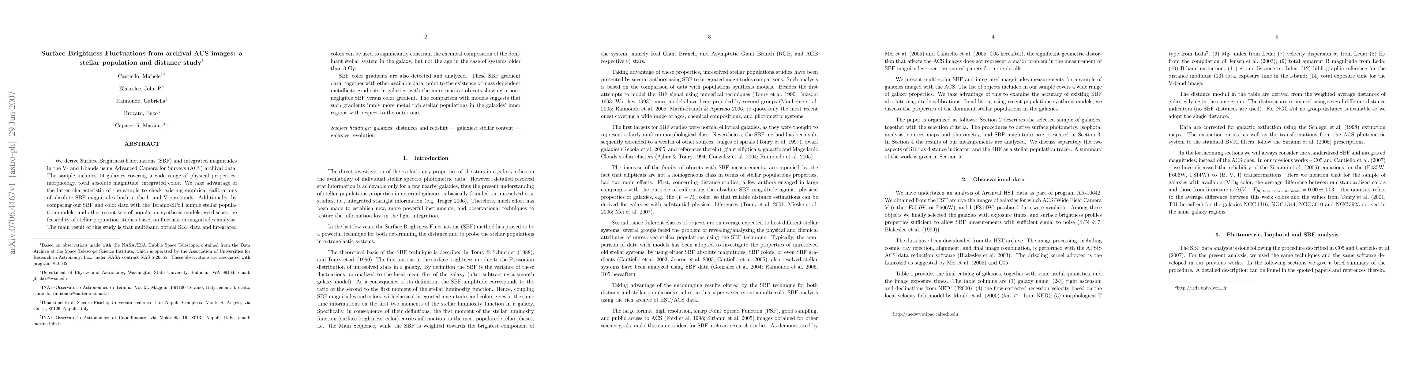 This study uses ACS archival data to derive Surface Brightness Fluctuations (SBF) in the V- and I-bands for 14 galaxies, revealing that multiband SBF data and integrated colors can constrain chemical composition but not age for systems older than 3 Gyr. SBF color gradients indicate mass-dependent metallicity gradients, suggesting more metal-rich populations in the inner regions of galaxies.