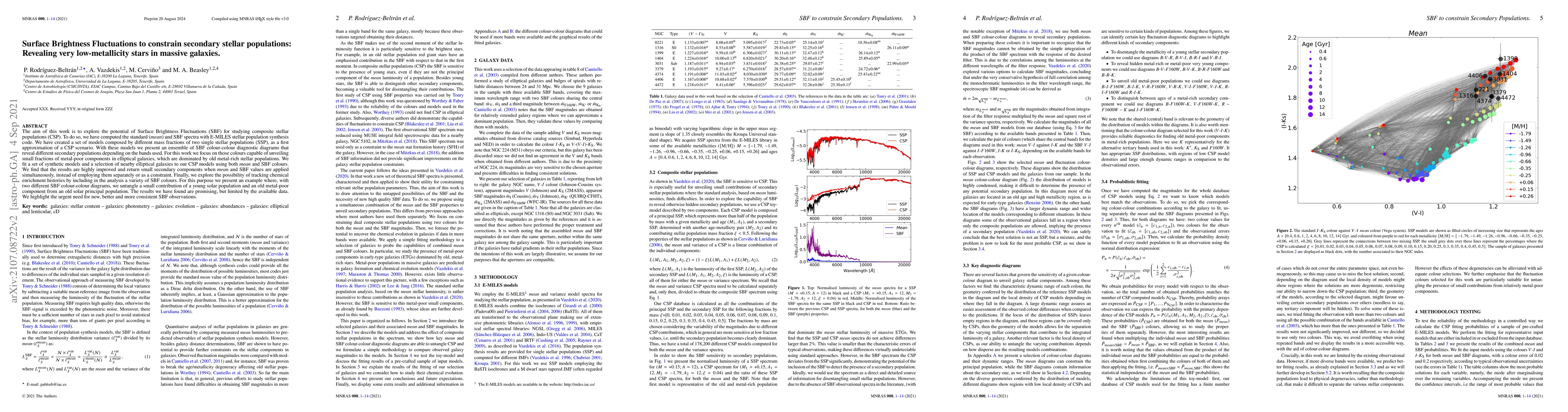 This paper investigates the use of Surface Brightness Fluctuations (SBF) to study composite stellar populations (CSP) in massive galaxies, revealing very low-metallicity stars. By employing SBF spectra and comparing them with mean colours, the authors demonstrate improved detection of secondary stellar populations, particularly metal-poor components in elliptical galaxies.