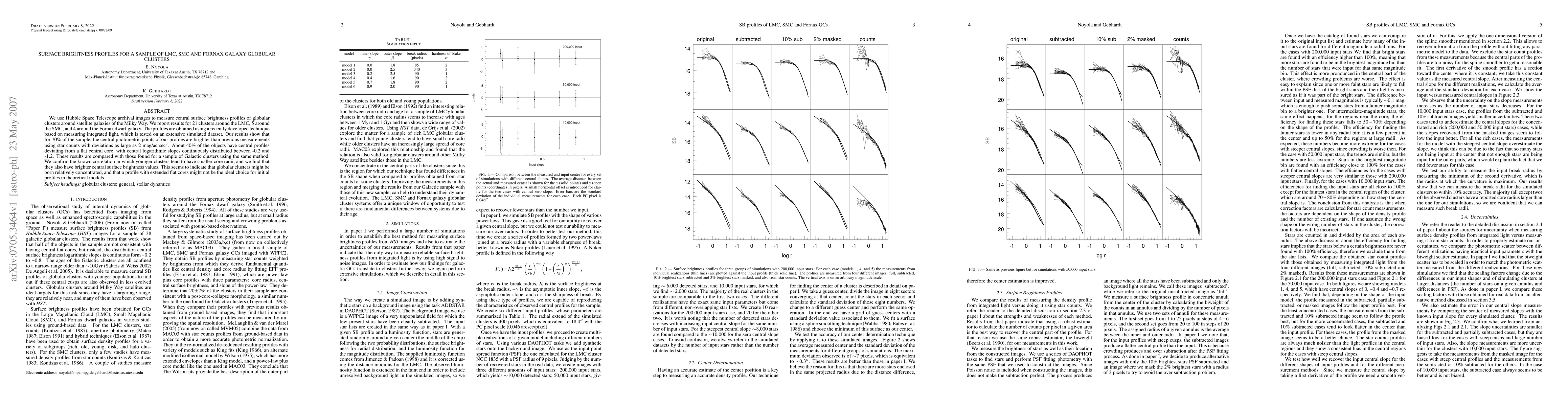 This study uses Hubble Space Telescope images to measure central surface brightness profiles of globular clusters in the LMC, SMC, and Fornax, finding that 70% are brighter than previous star count measurements. The results suggest younger clusters have smaller core radii and brighter central values, indicating initial profiles in theoretical models may need reconsideration.