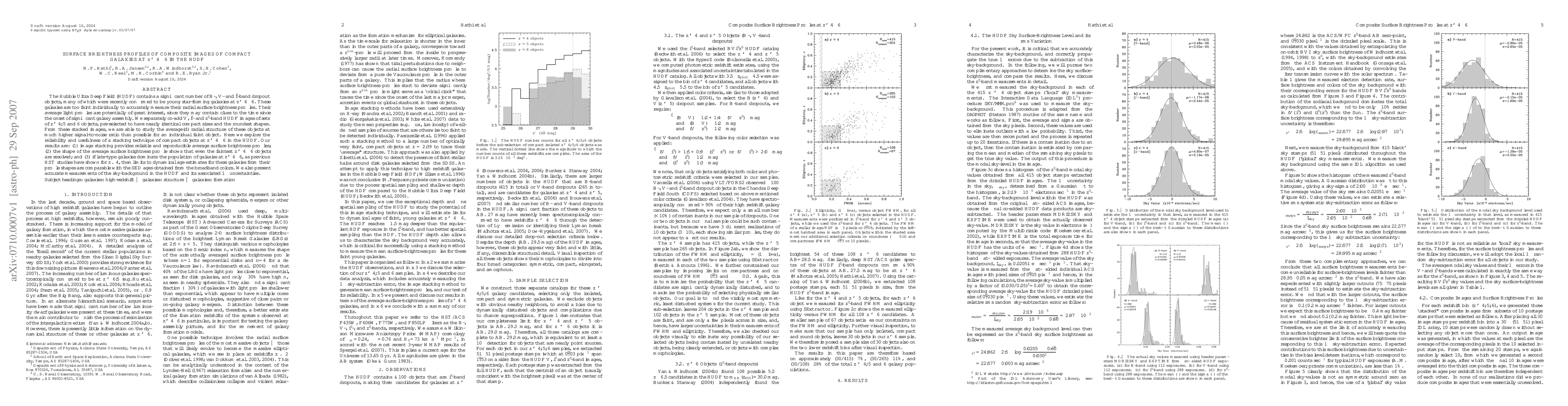 This paper investigates the average surface brightness profiles of compact, young star-forming galaxies at z~4-6 in the Hubble Ultra Deep Field (HUDF) using image stacking techniques. The study finds that stacking provides reliable average profiles, indicating that the faintest galaxies are resolved, and suggests that dynamical age estimates align with SED ages, supporting the dominance of late-type galaxies in this population.