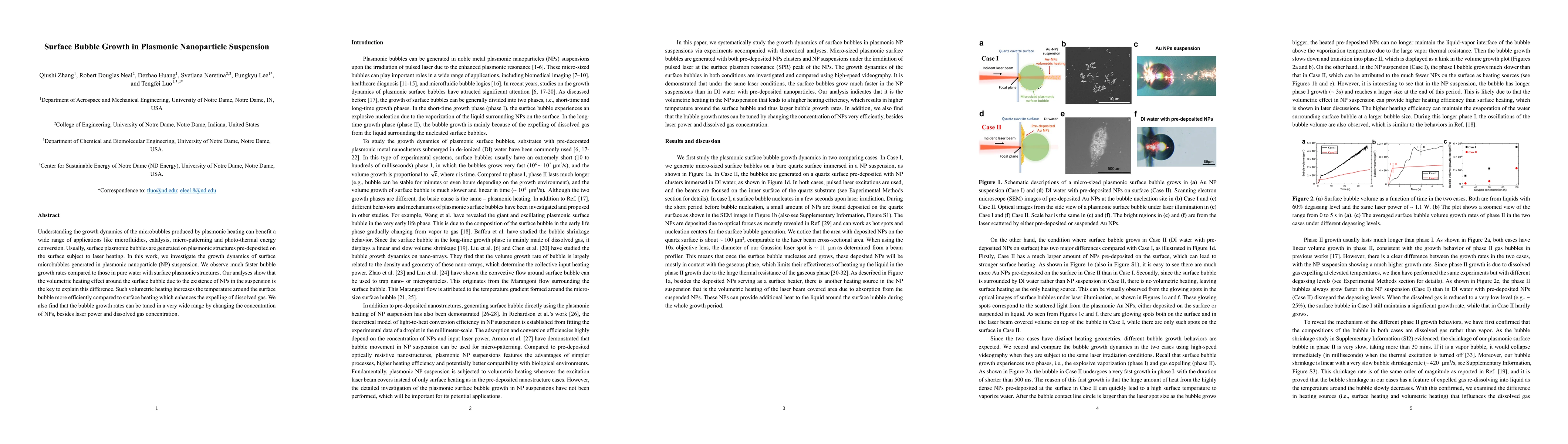 This paper investigates the rapid growth dynamics of microbubbles in plasmonic nanoparticle suspensions, attributing faster growth rates to volumetric heating effects due to nanoparticles. The study finds that bubble growth can be finely tuned by adjusting nanoparticle concentration, laser power, and dissolved gas levels.