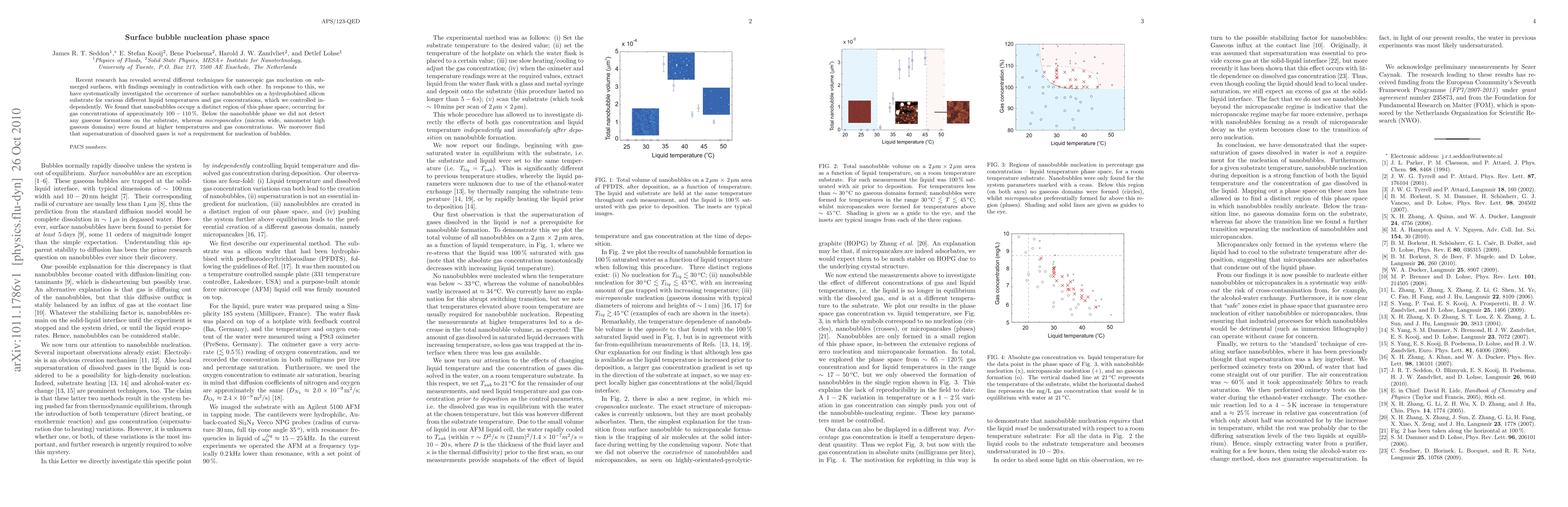 Recent research has revealed several different techniques for nanoscopic gas nucleation on submerged surfaces, with findings seemingly in contradiction with each other. In response to this, we have systematically investigated the occurrence of surface nanobubbles on a hydrophobised silicon substrate for various different liquid temperatures and gas concentrations, which we controlled independently. We found that nanobubbles occupy a distinct region of this phase space, occurring for gas concentrations of approximately 100-110%. Below the nanobubble phase we did not detect any gaseous formations on the substrate, whereas micropancakes (micron wide, nanometer high gaseous domains) were found at higher temperatures and gas concentrations. We moreover find that supersaturation of dissolved gases is not a requirement for nucleation of bubbles.
