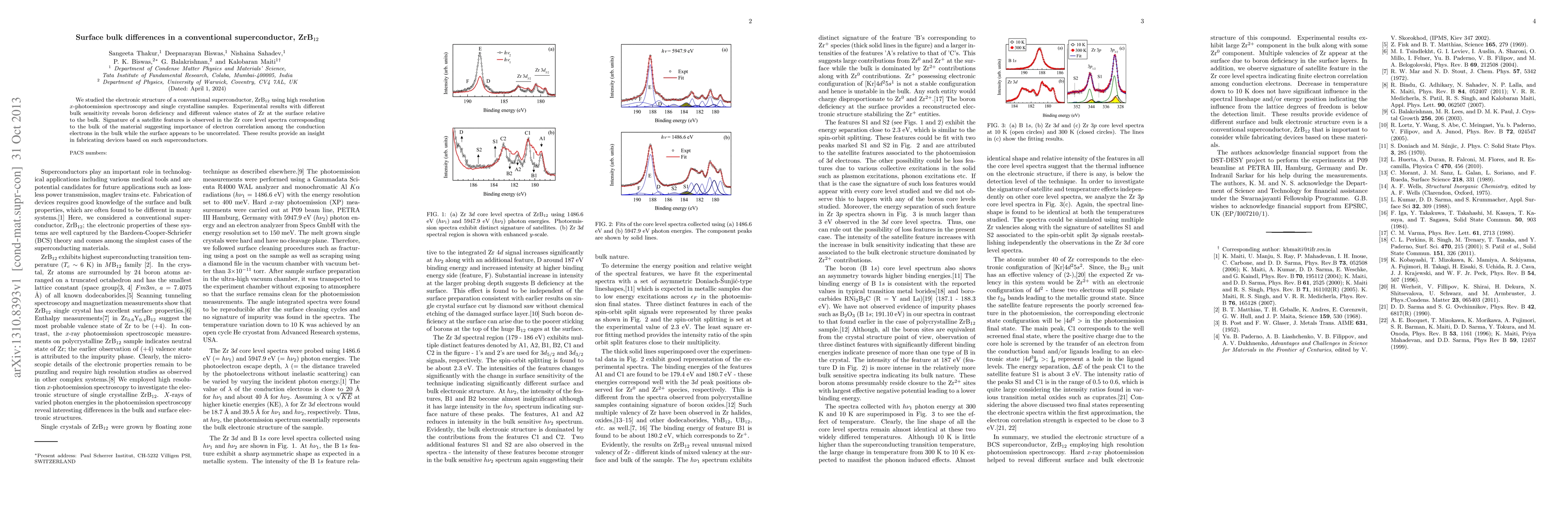 High resolution x-photoemission spectroscopy reveals boron deficiency and different valence states of Zr at the surface compared to the bulk in the conventional superconductor ZrB(12), indicating electron correlation in the bulk but not at the surface. These findings inform the development of superconducting devices.