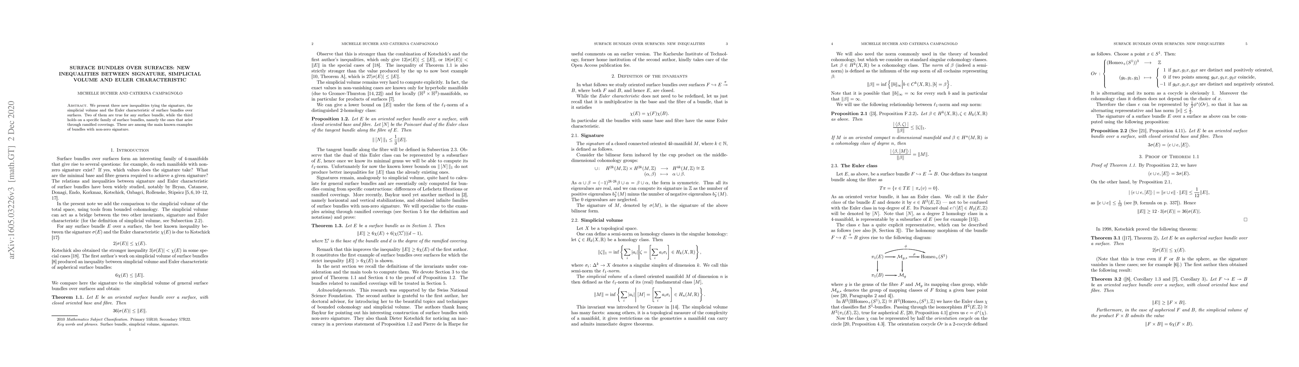 The paper establishes three new inequalities relating the signature, simplicial volume, and Euler characteristic of surface bundles over surfaces, with two inequalities applicable to any surface bundle and one specific to bundles arising from ramified coverings. These findings are significant for understanding bundles with non-zero signature.