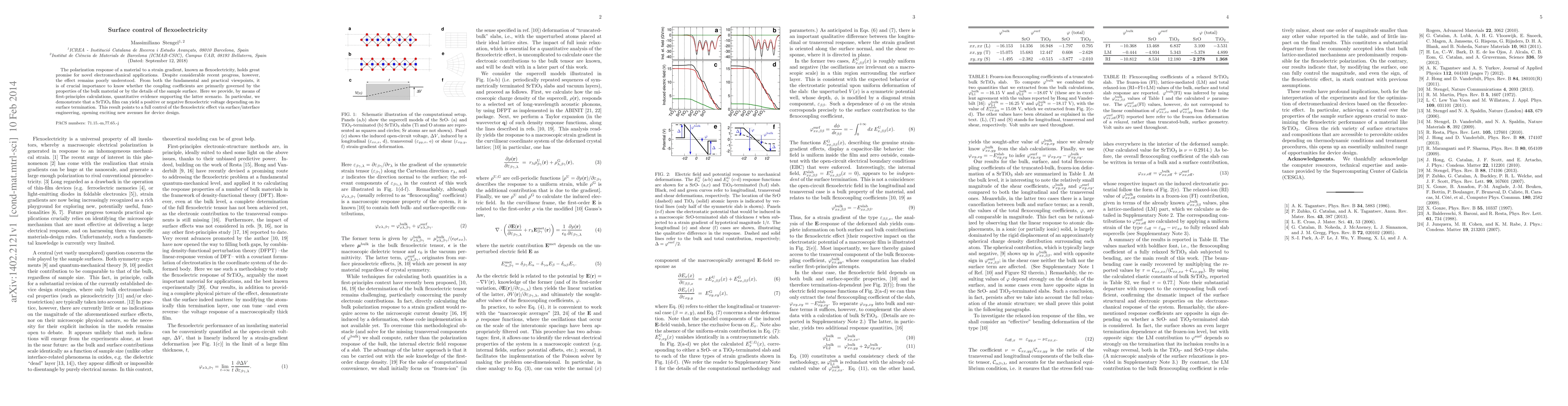 This research, using first-principles calculations, shows that the flexoelectric effect in materials, which converts mechanical stress into electricity, is primarily controlled by surface termination rather than bulk properties. The study demonstrates that a SrTiO3 film can generate positive or negative flexoelectric voltage depending on its surface, suggesting that surface/interface engineering could enable full control over this effect for novel device designs.
