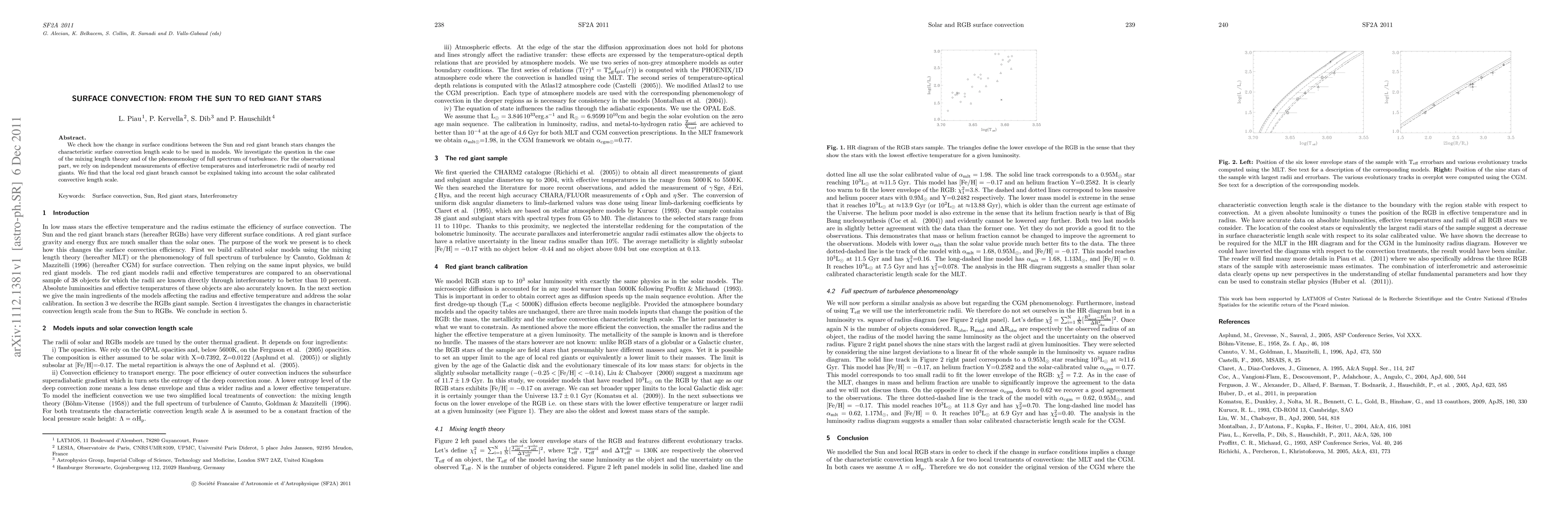 We check how the change in surface conditions between the Sun and red giant branch stars changes the characteristic surface convection length scale to be used in models. We investigate the question in the case of the mixing length theory and of the phenomenology of full spectrum of turbulence. For the observational part, we rely on independent measurements of effective temperatures and interferometric radii of nearby red giants. We find that the local red giant branch cannot be explained taking into account the solar calibrated convective length scale.