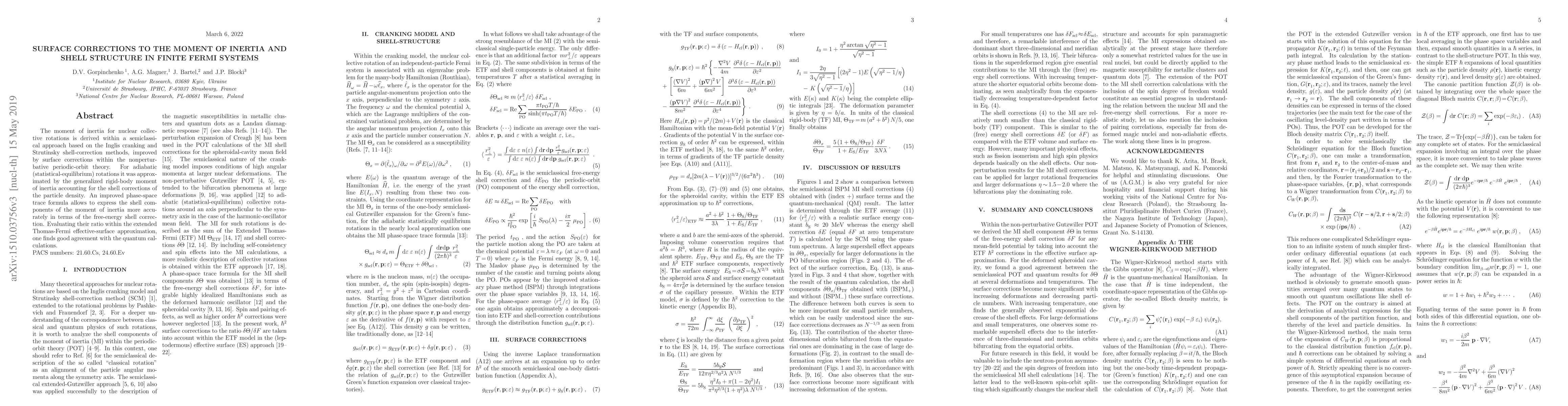 This paper derives the moment of inertia for nuclear rotations using a semiclassical approach enhanced by surface corrections and shell structure effects, showing good agreement with quantum calculations. The study employs improved phase-space trace formulas to accurately represent shell components of the moment of inertia.