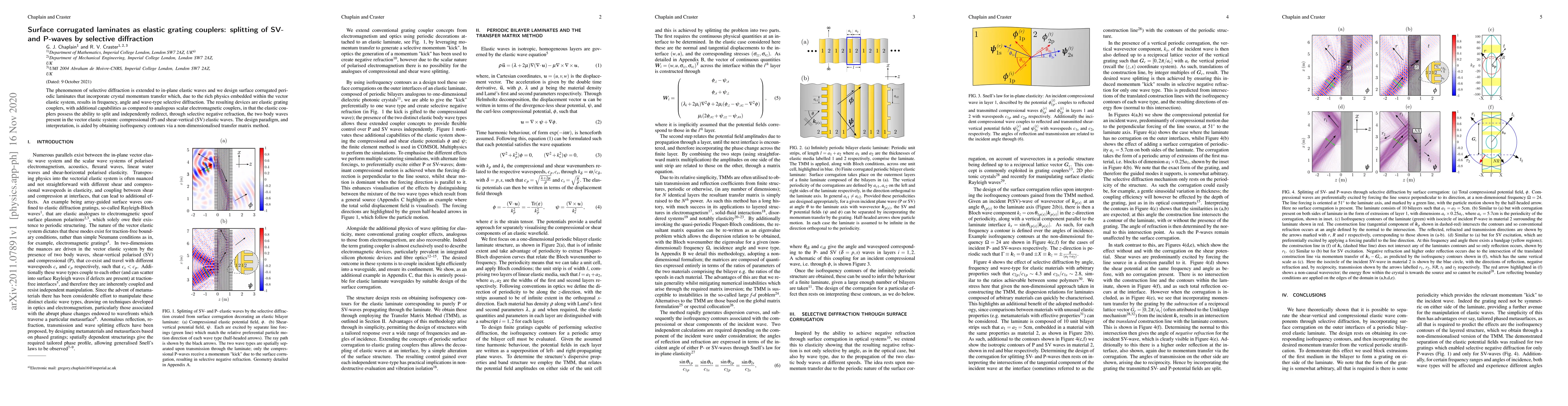 This paper designs surface corrugated laminates that act as elastic grating couplers, enabling selective diffraction of P- and SV-waves through crystal momentum transfer, with capabilities for frequency, angle, and wave-type selective diffraction. The method employs a non-dimensionalised transfer matrix to obtain isofrequency contours, facilitating the design and interpretation of these novel elastic couplers.