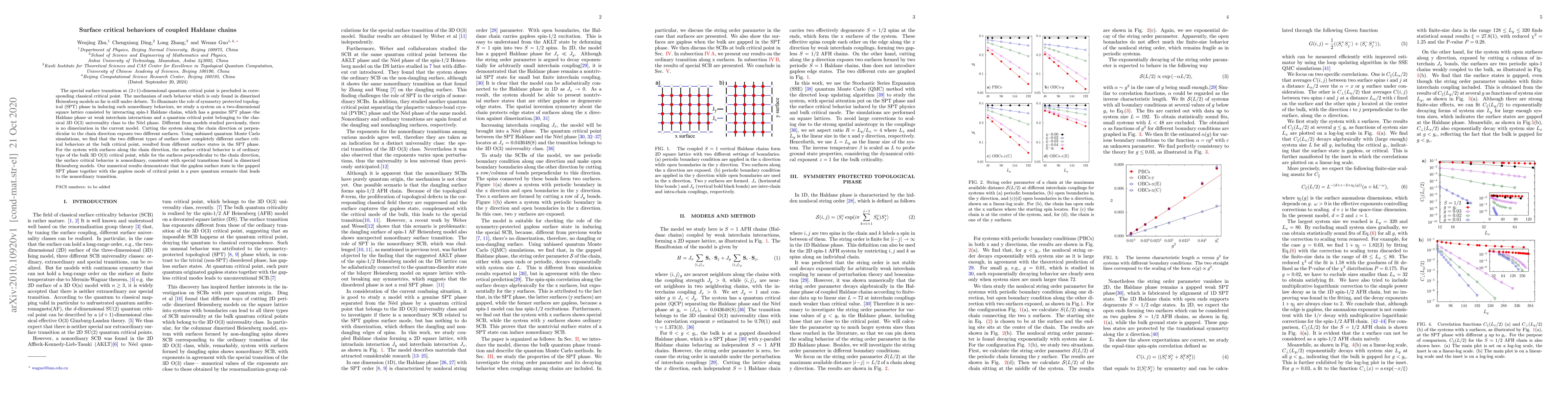 Researchers studied a system of interacting spin-1 Haldane chains on a 2D square lattice, finding that cutting the system along different directions reveals nonordinary surface critical behaviors at bulk critical points.