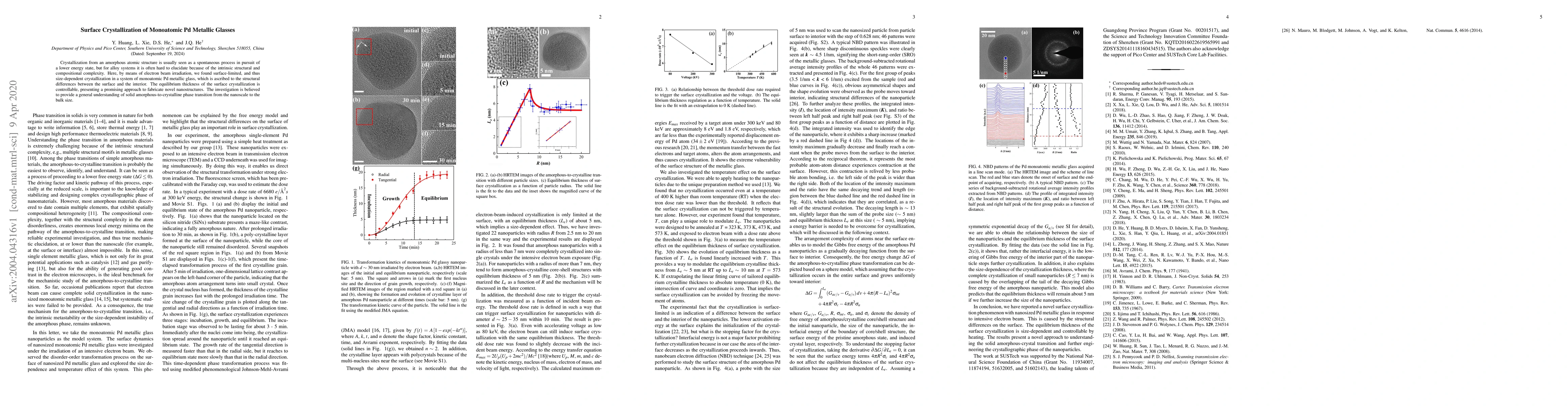Researchers found that monoatomic Pd metallic glass can undergo surface-limited crystallization through electron beam irradiation, allowing for the creation of novel nanostructures with controllable thickness. This discovery provides a general understanding of solid amorphous-to-crystalline phase transition from the nanoscale to the bulk size.